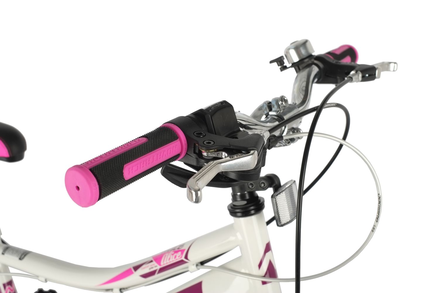 Велосипед NOVATRACK 20" ALICE белый,  стальная рама, 6 скор., Shimano TY21/Microshift TS38, V- brake