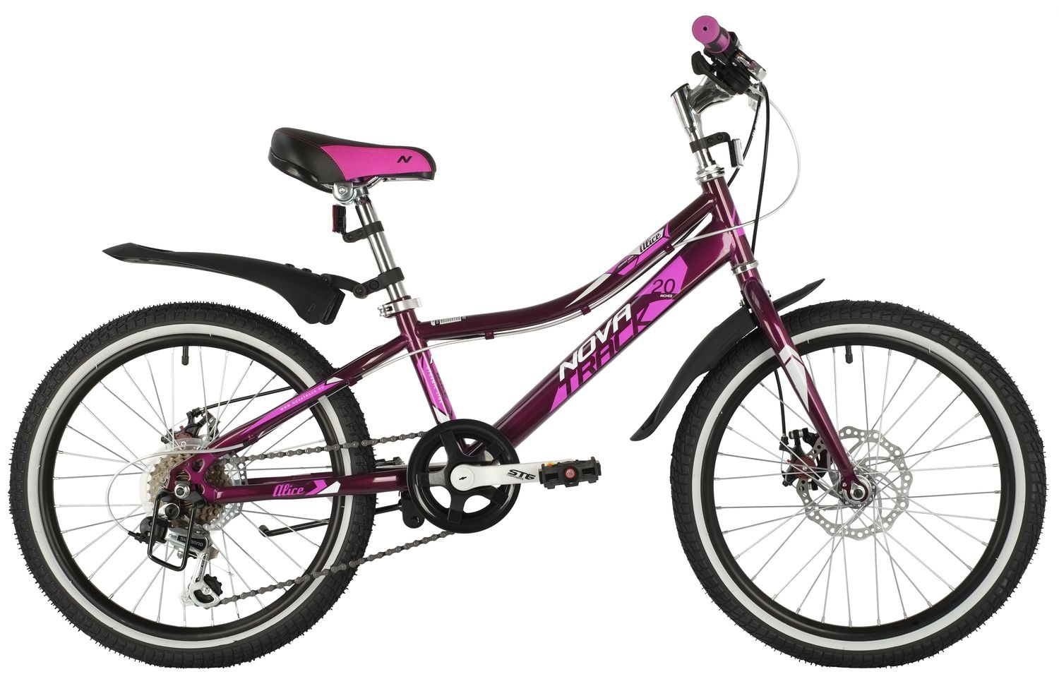 Велосипед NOVATRACK 20" ALICE фиолетовый,  стальная рама, 6 скор., Shimano TY21/Microshift TS38, дисковый тормоз