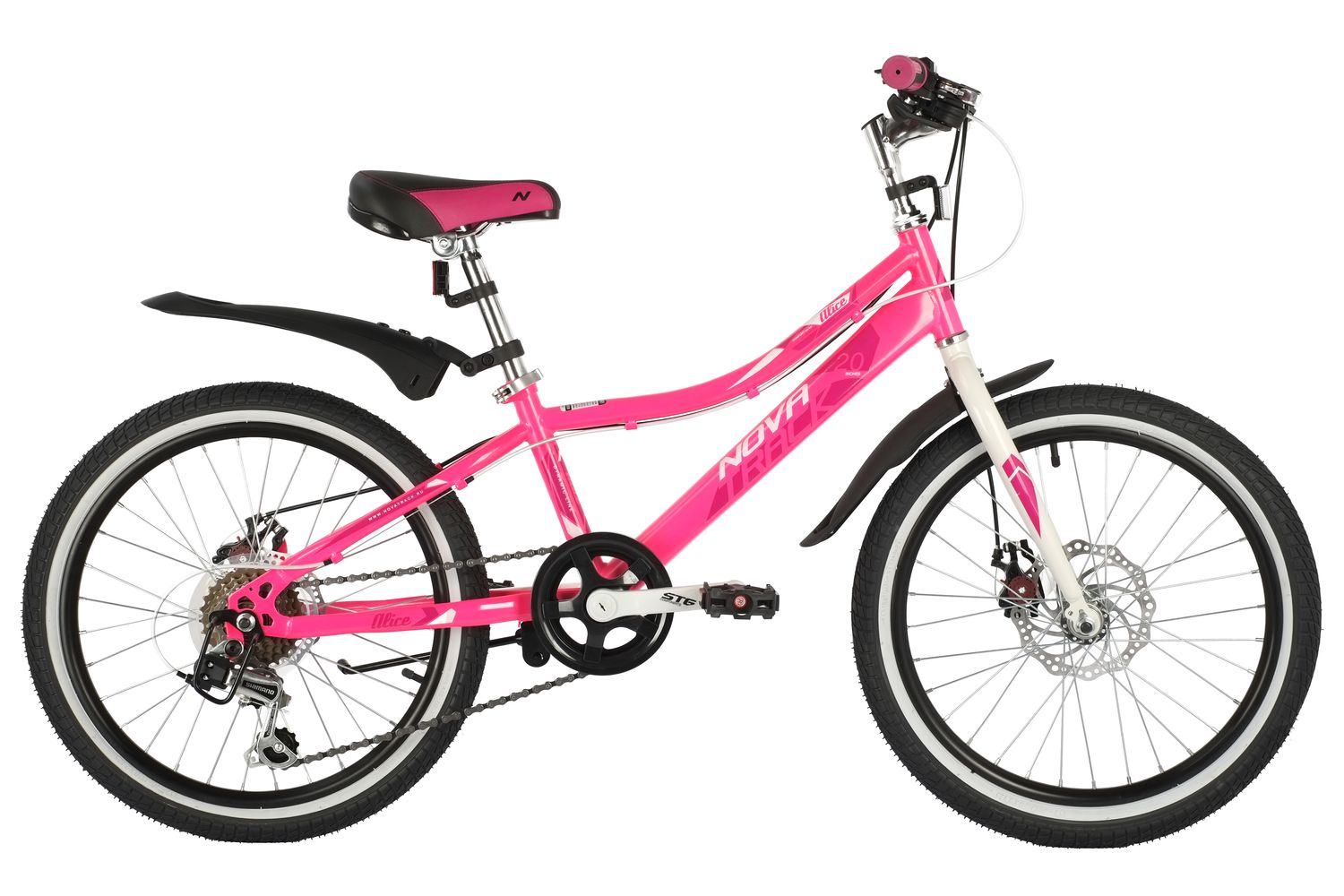 Велосипед NOVATRACK 20" ALICE розовый,  стальная рама, 6 скор., Shimano TY21/Microshift TS38, дисковый тормоз