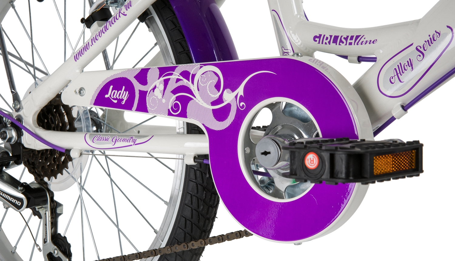 Велосипед NOVATRACK 20", GIRLISH line, белый-сиреневый, алюм., 6 скоростей, Shimano