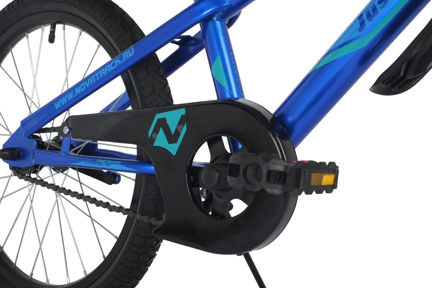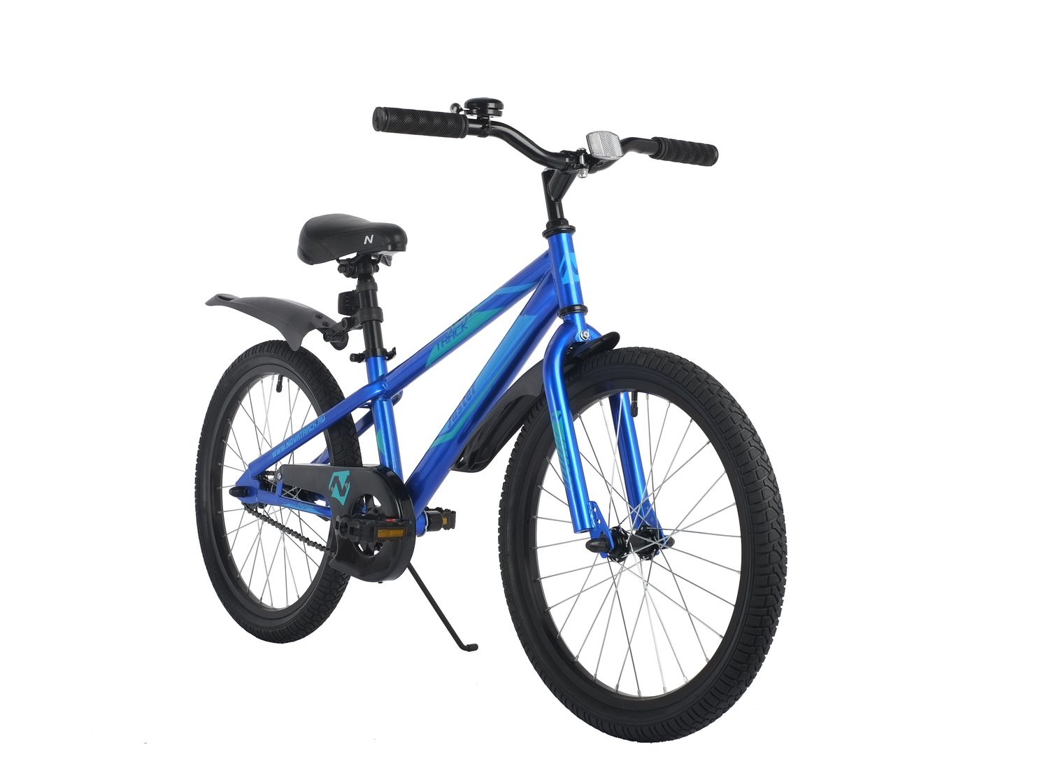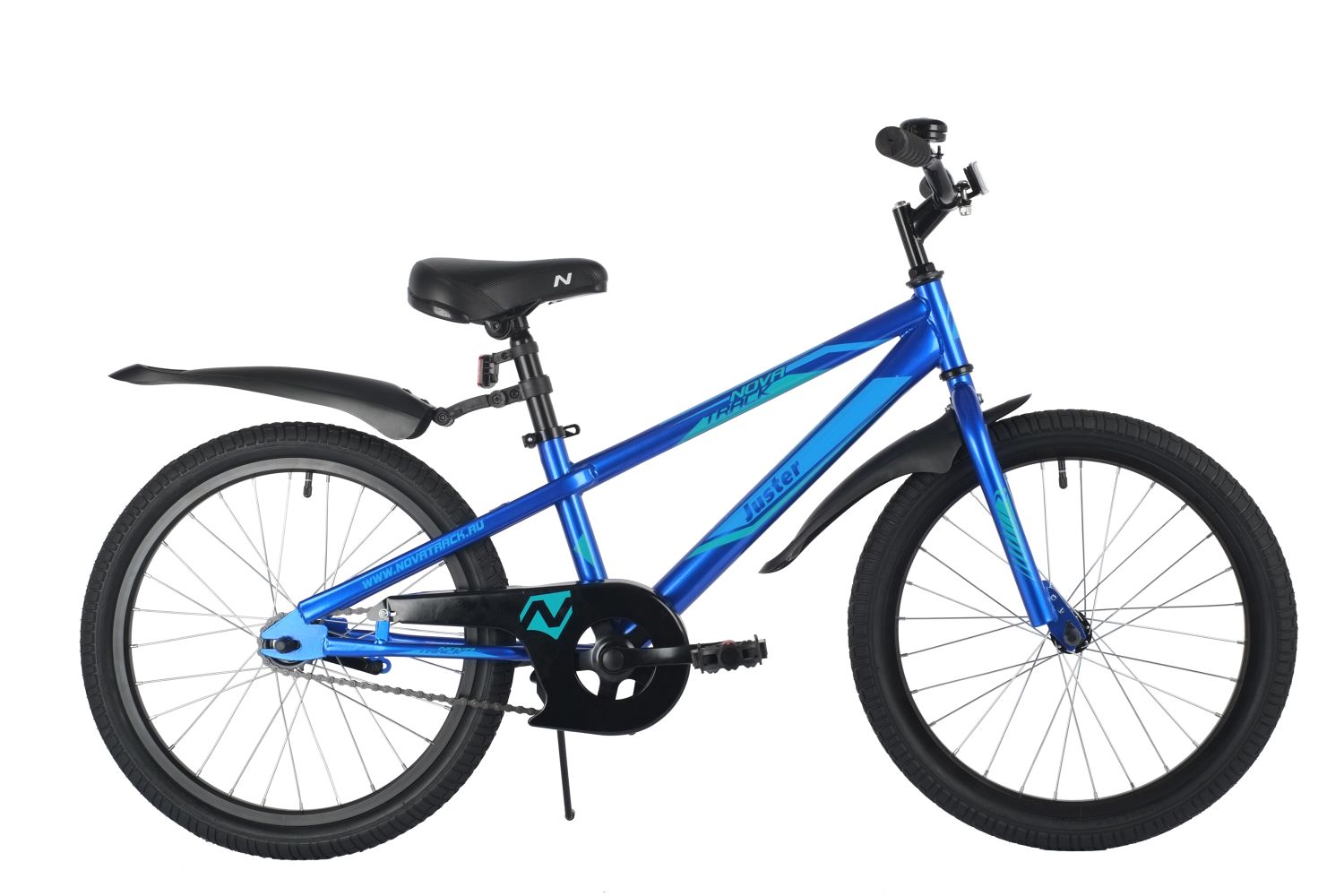 Велосипед NOVATRACK 20", JUSTER, синий, тормоз ножной, защита А-тип, пластиковые крылья