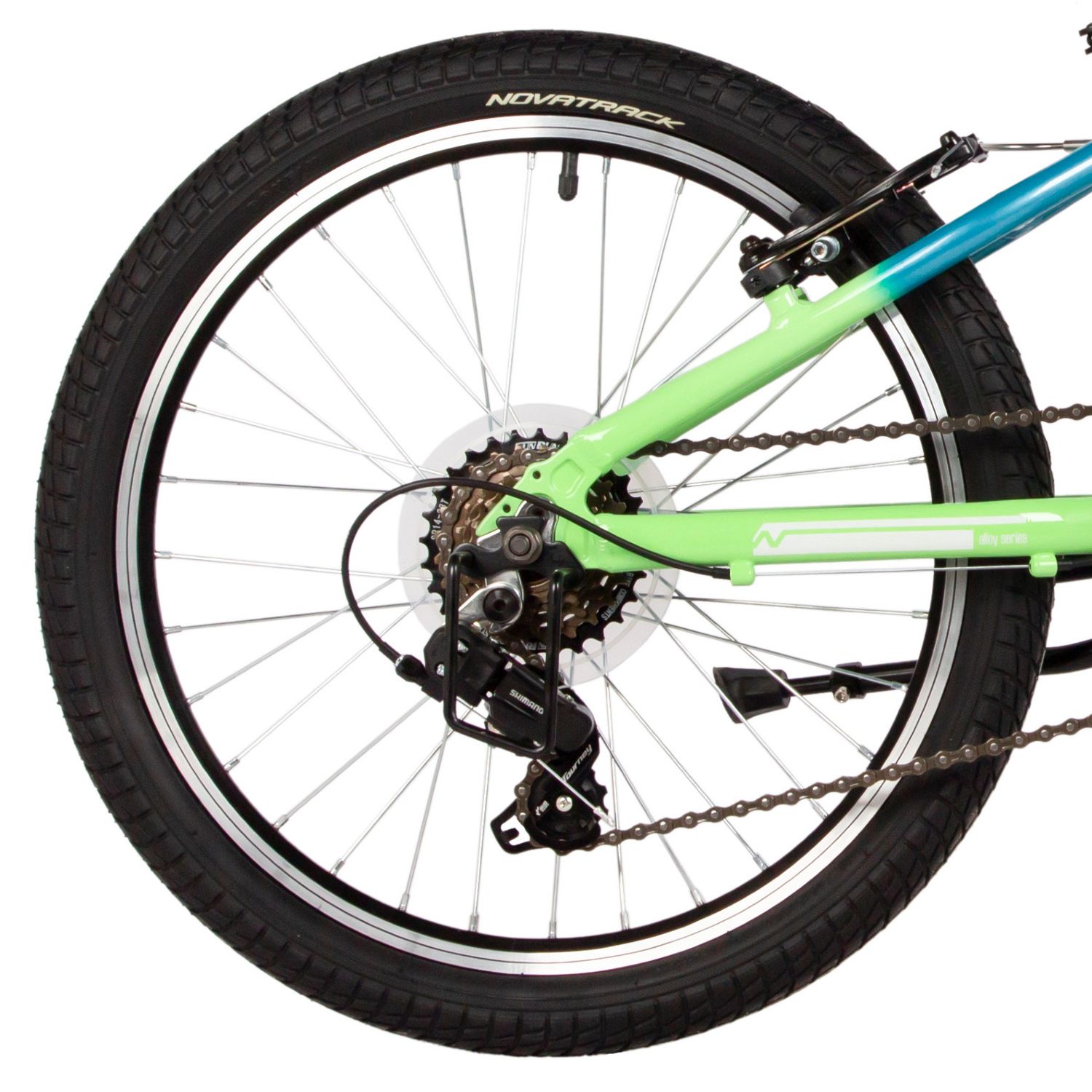 Велосипед NOVATRACK 20" KATRINA, алюм., голубой-салатовый, 6-скор, Shimano/Microshift  V-brake
