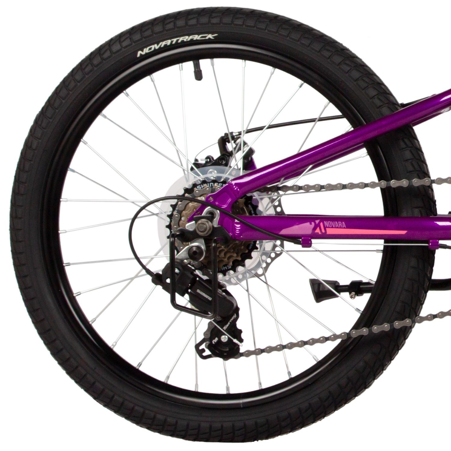 Велосипед NOVATRACK 20" NOVARA, алюм., фиолетовый, 6-скор, Shimano/Microshift диск.тормоз STG