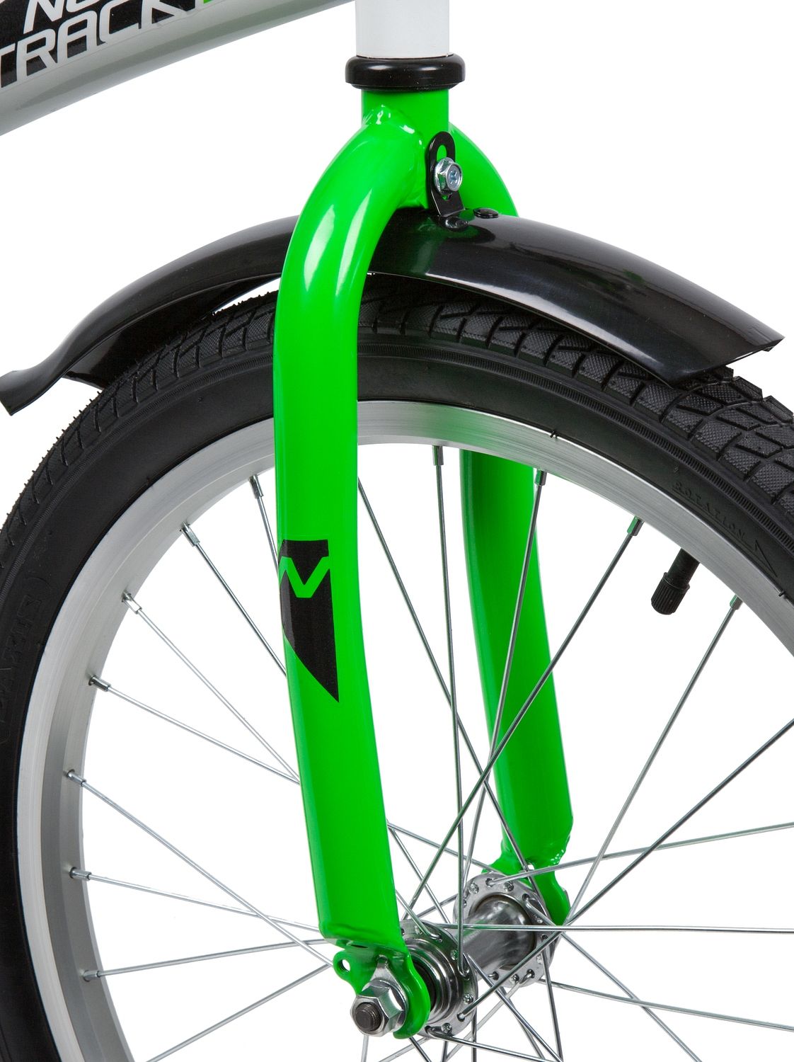 Велосипед NOVATRACK 20" STRIKE белый-зелёный, тормоз нож, крылья, багажник, защита А-тип