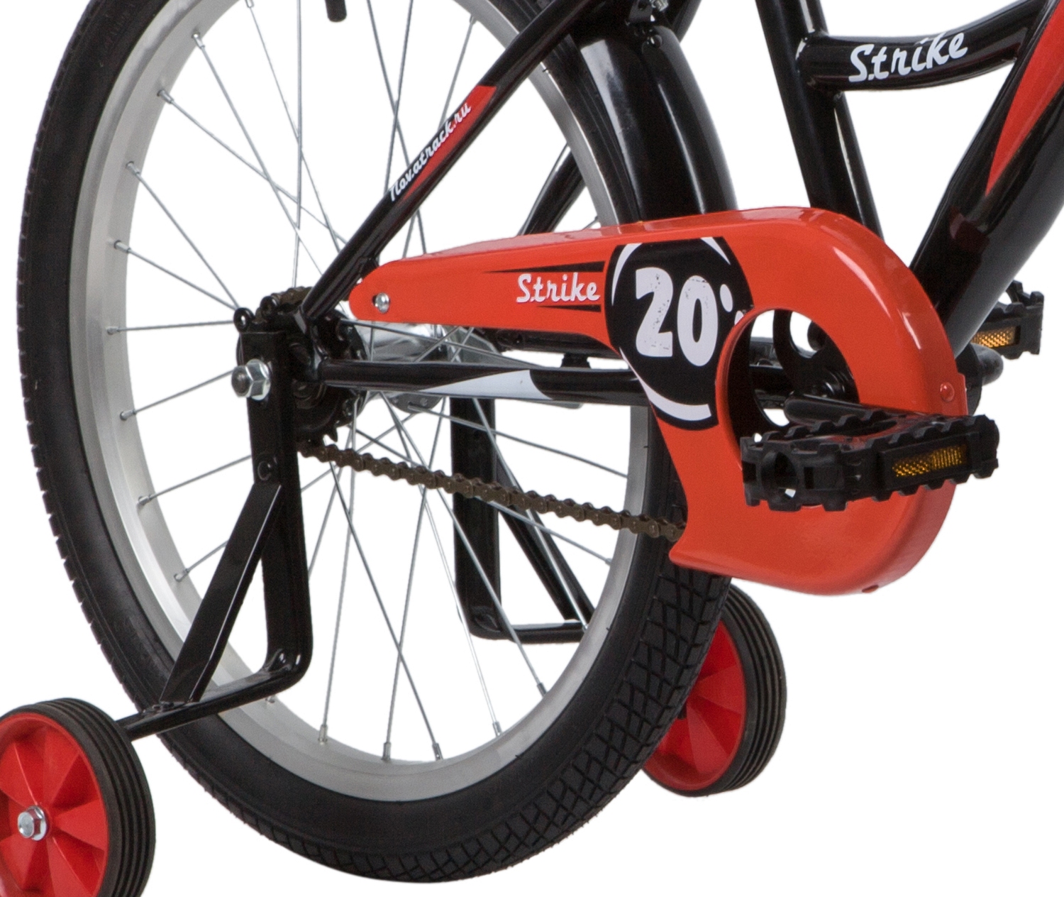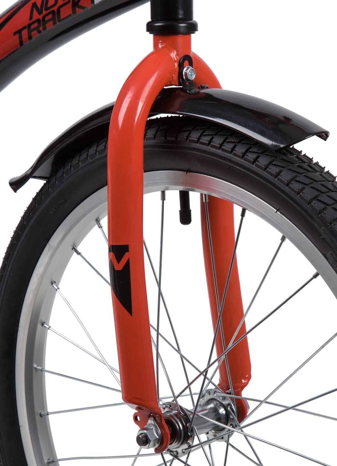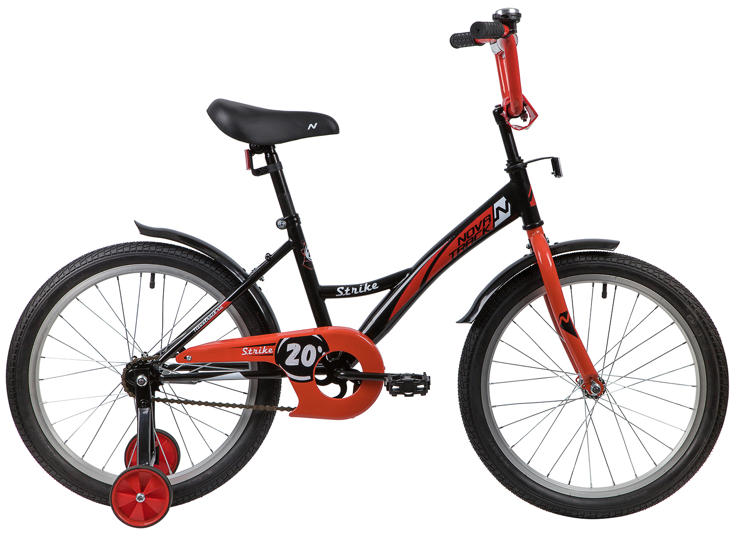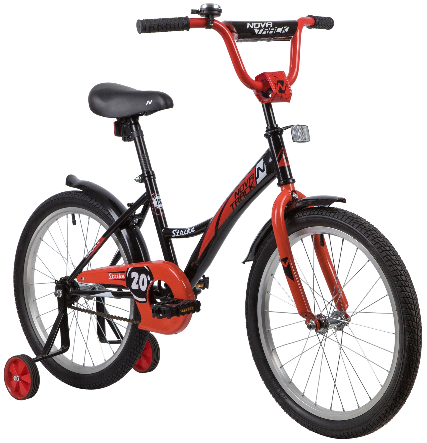 Велосипед NOVATRACK 20" STRIKE черный-красный, тормоз нож, крылья корот, защита А-тип
