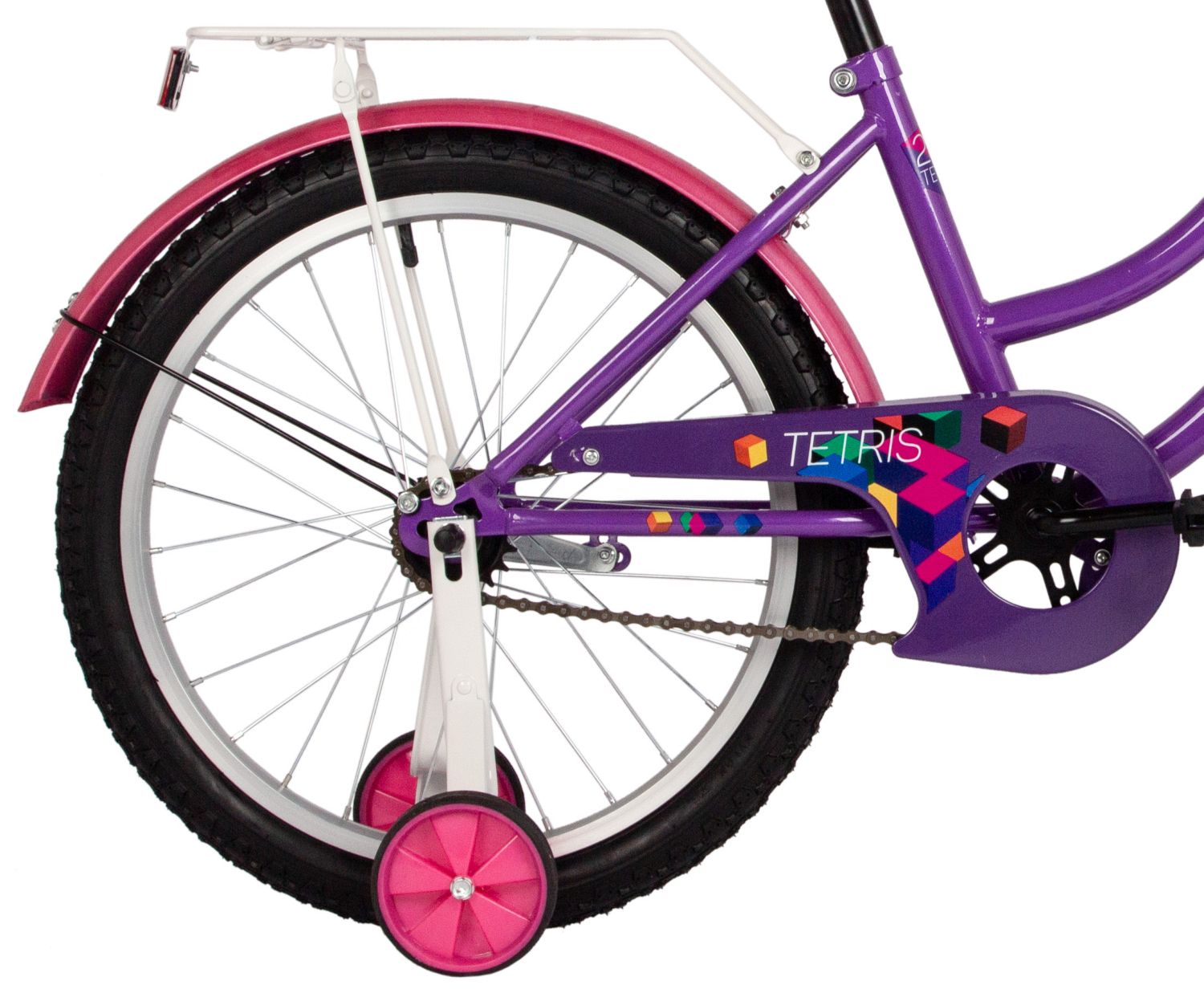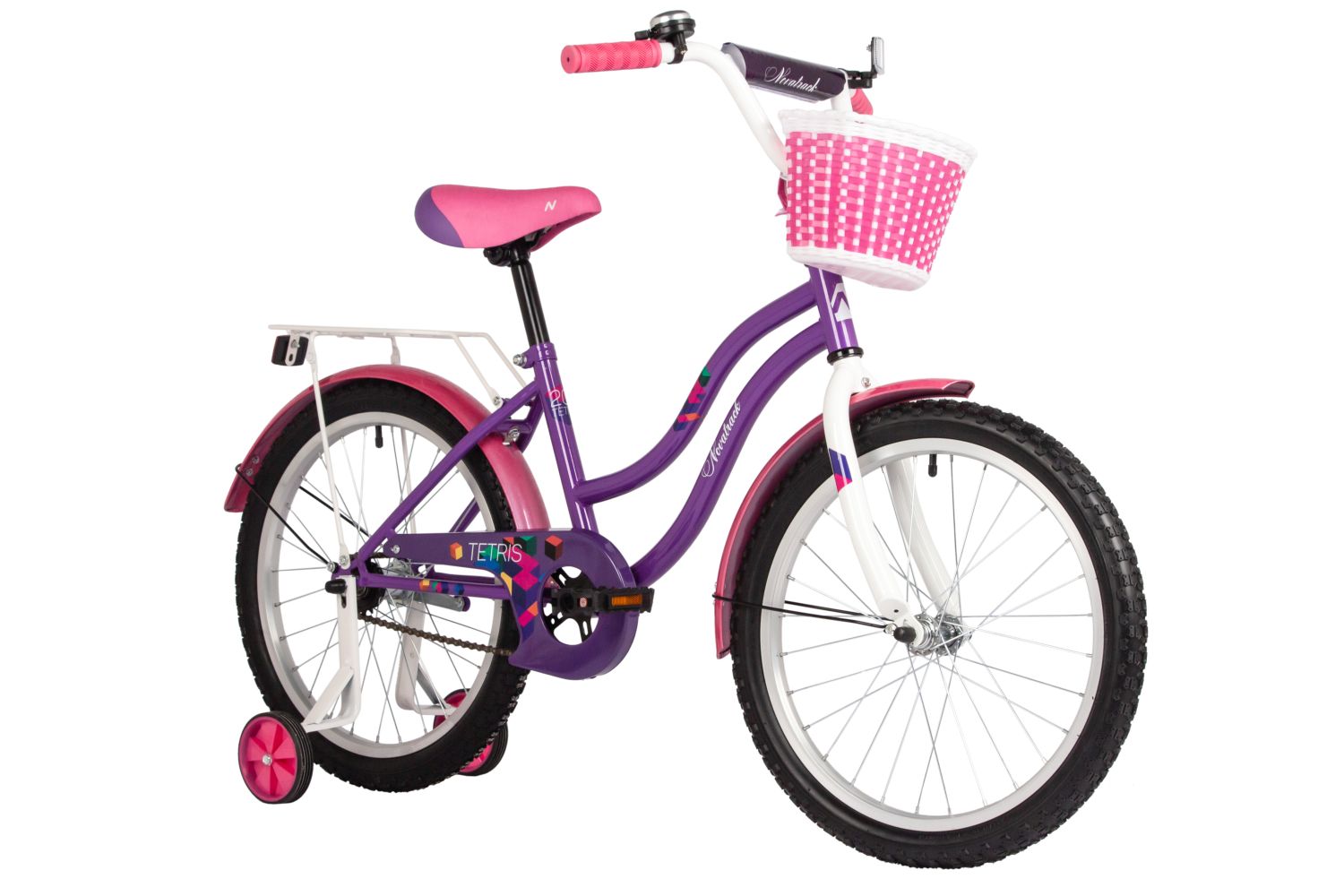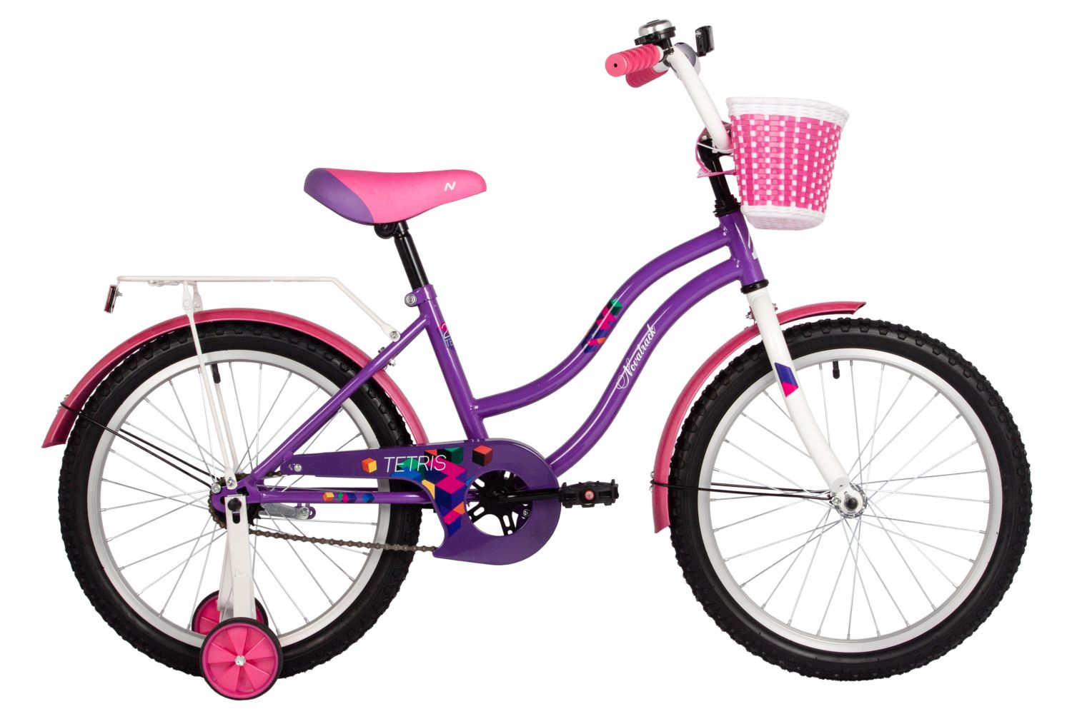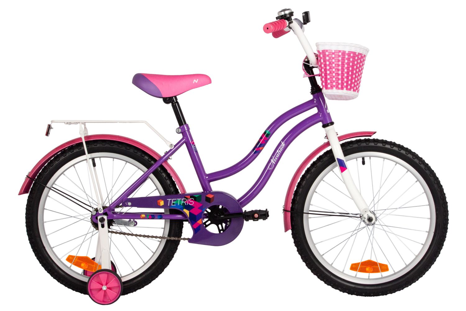 Велосипед NOVATRACK 20" TETRIS фиолетовый, тормоз нож, крылья цвет, багажник, корзина, защ.це
