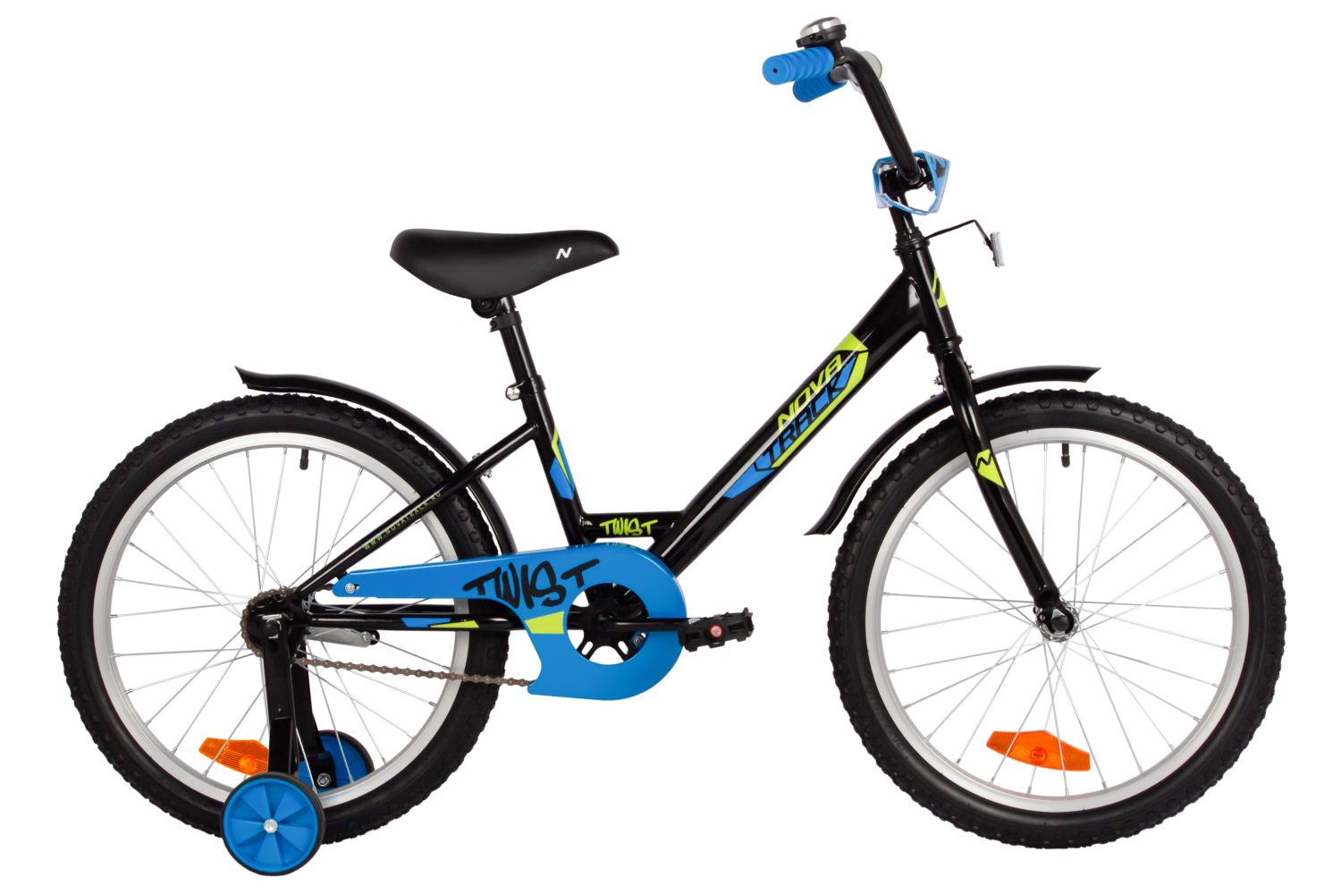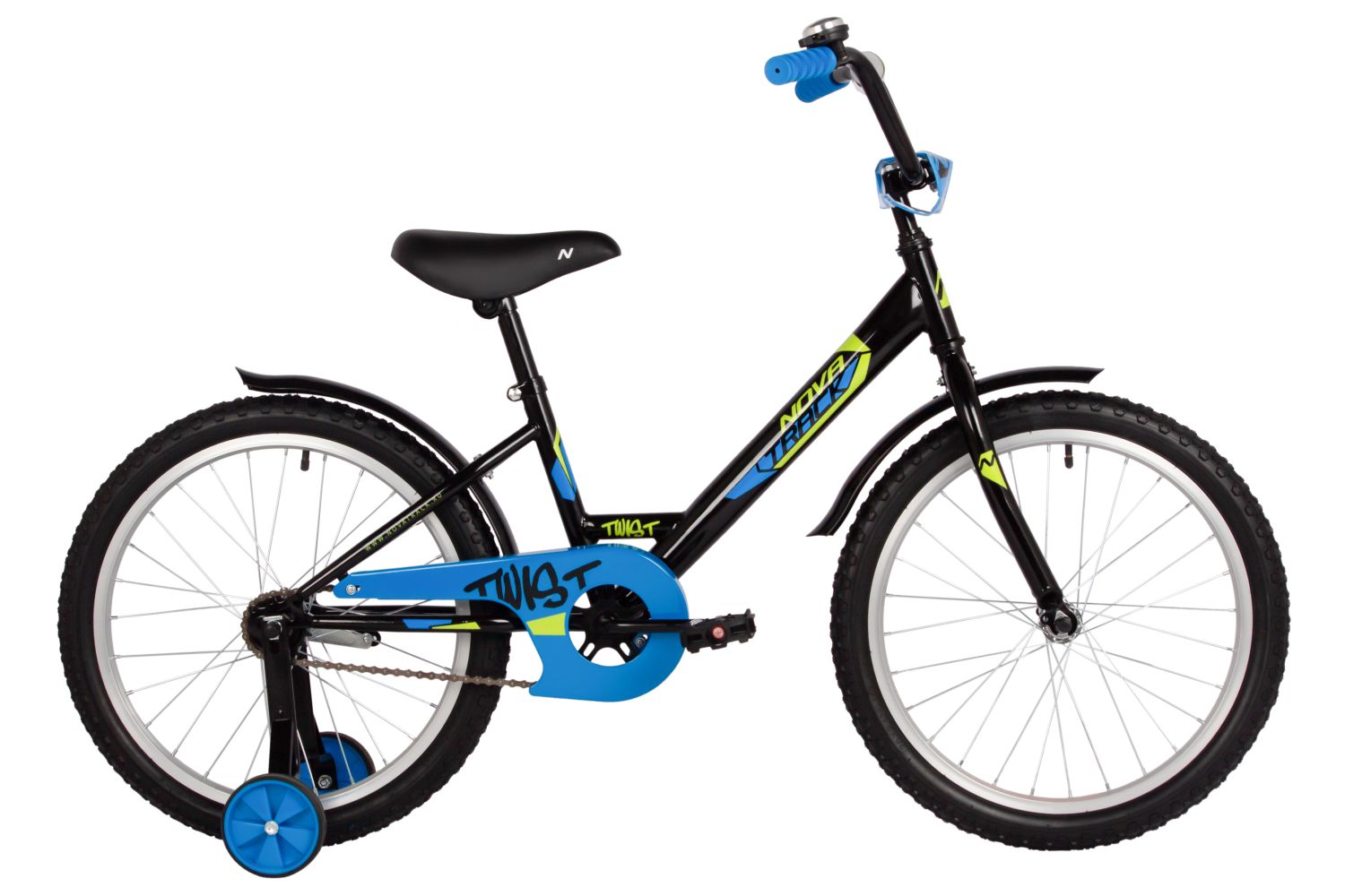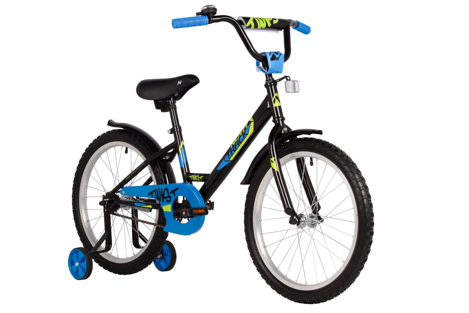 Велосипед NOVATRACK 20" TWIST черный, тормоз нож, крылья корот, защита цепи