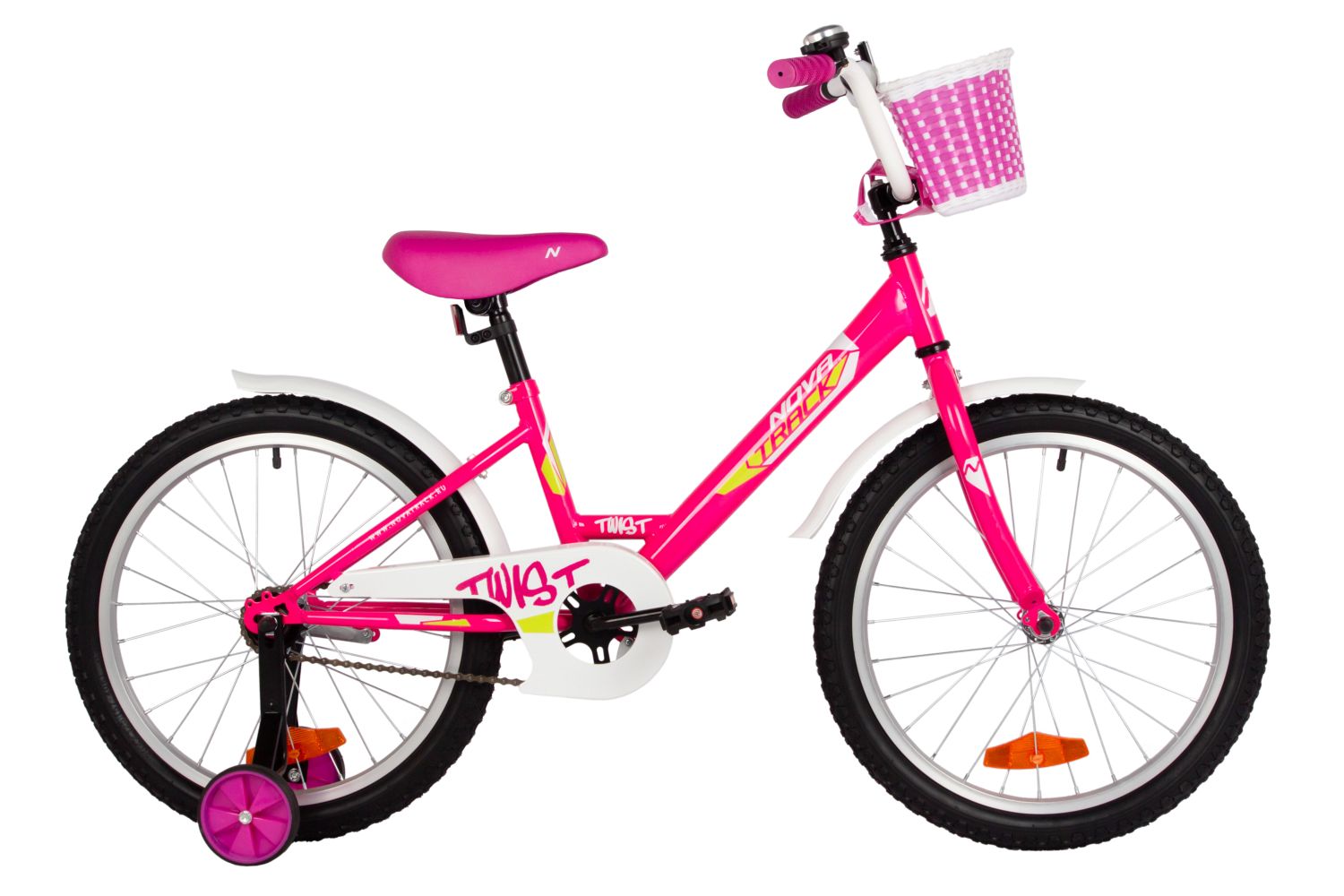Велосипед NOVATRACK 20" TWIST розовый, тормоз нож, крылья корот, защита цепи, корзина