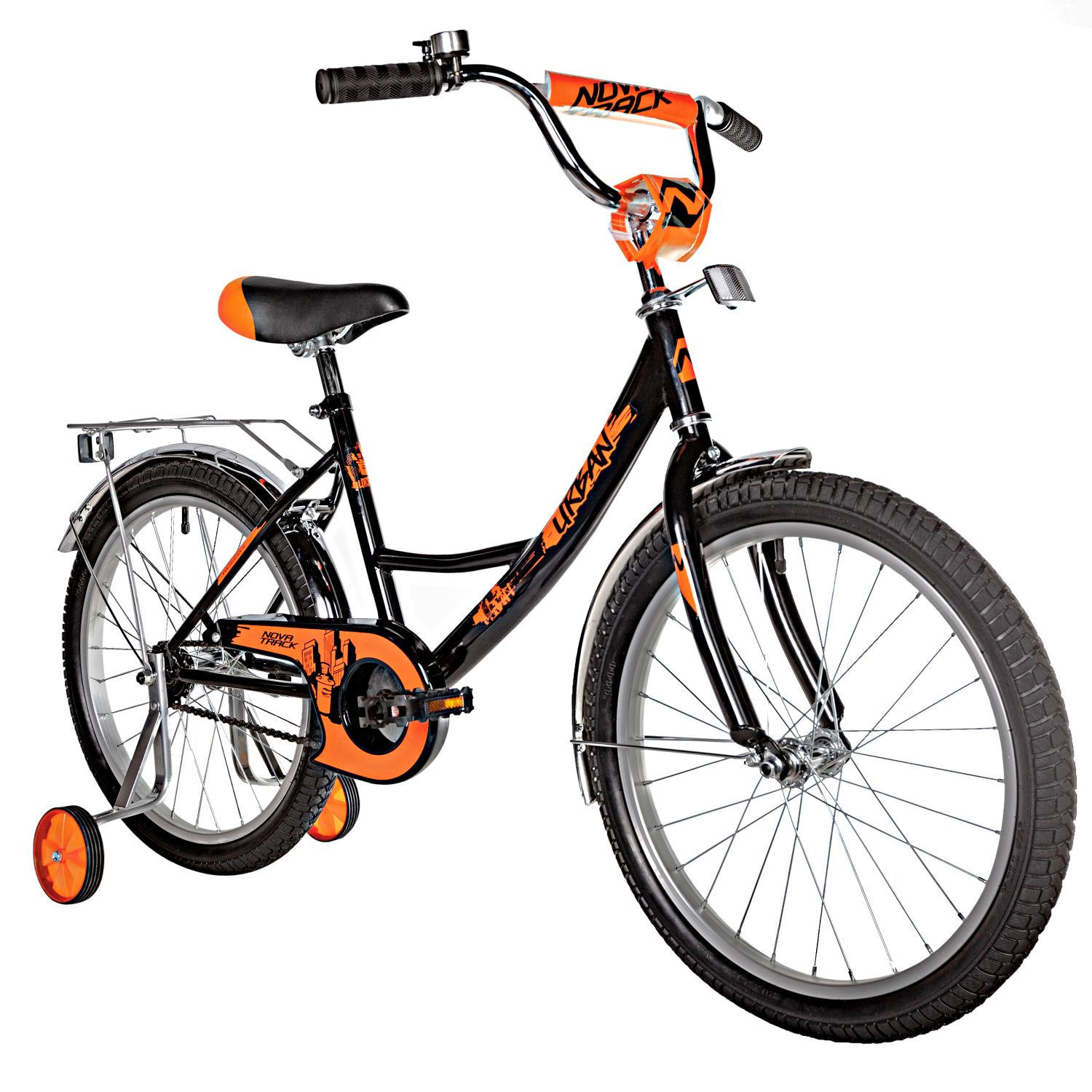 Велосипед NOVATRACK 20" URBAN чёрный, защита А-тип, тормоз нож, крылья и багажник хром
