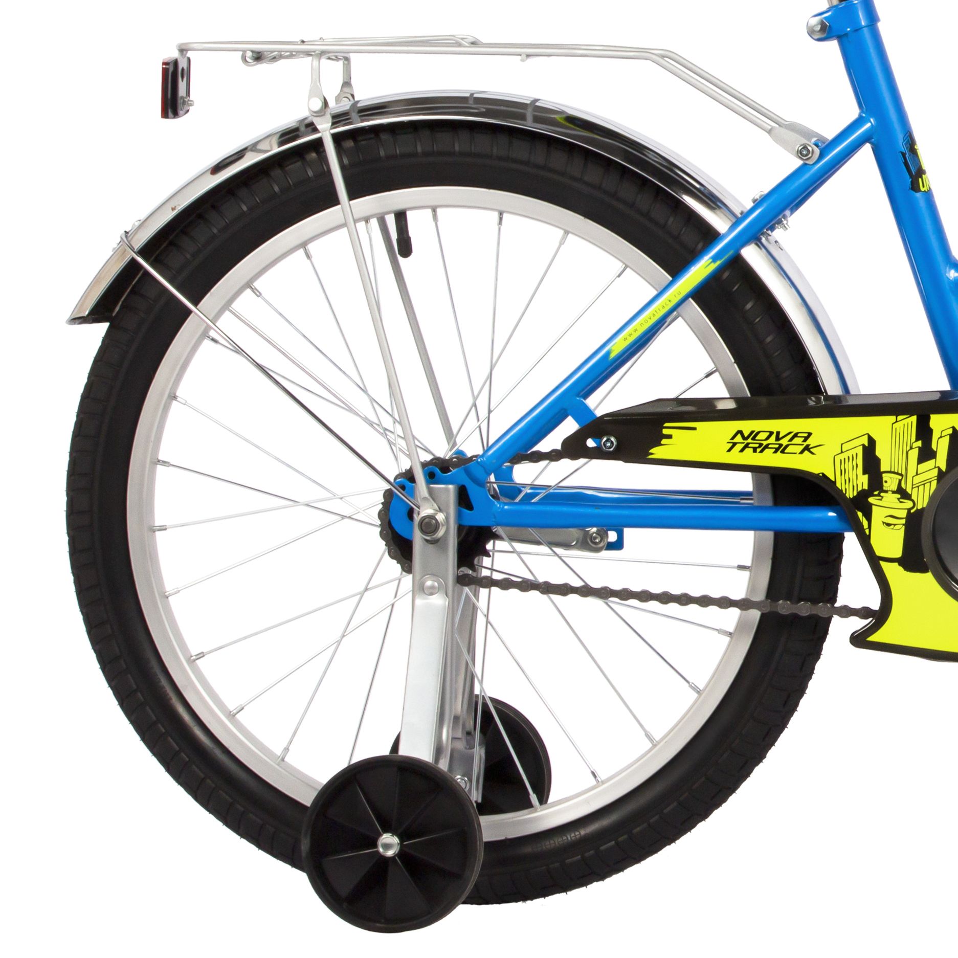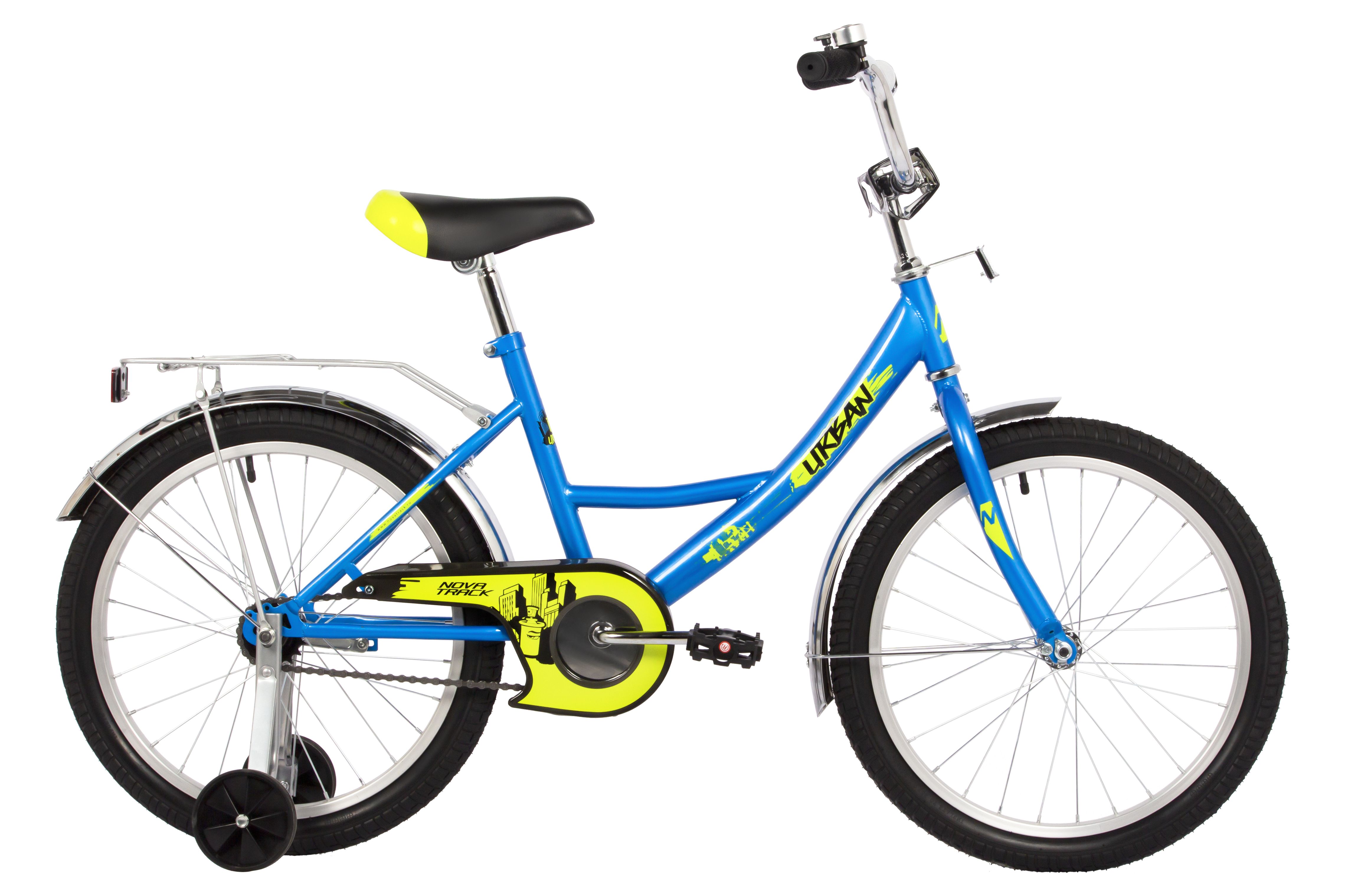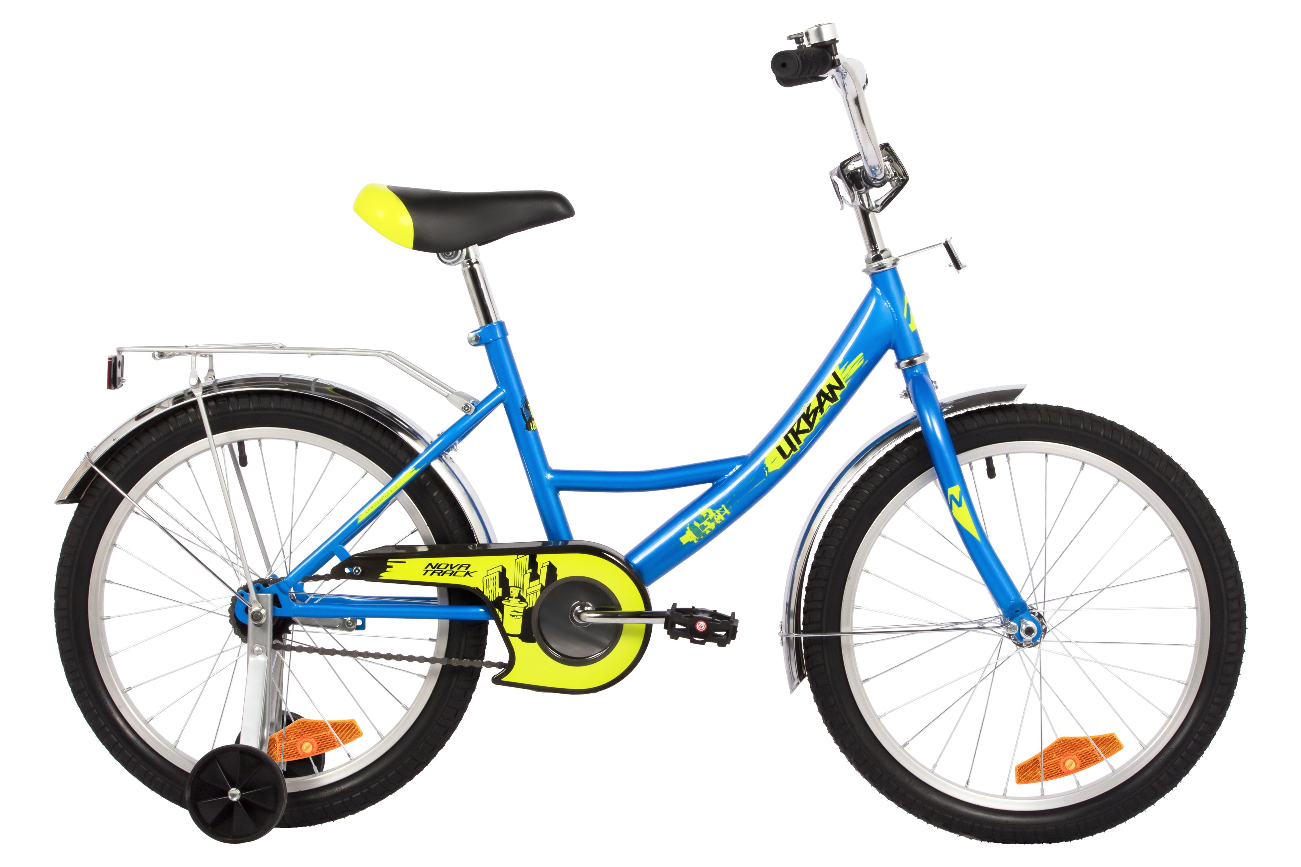Велосипед NOVATRACK 20" URBAN синий, защита А-тип, тормоз нож., крылья и багажник хром.