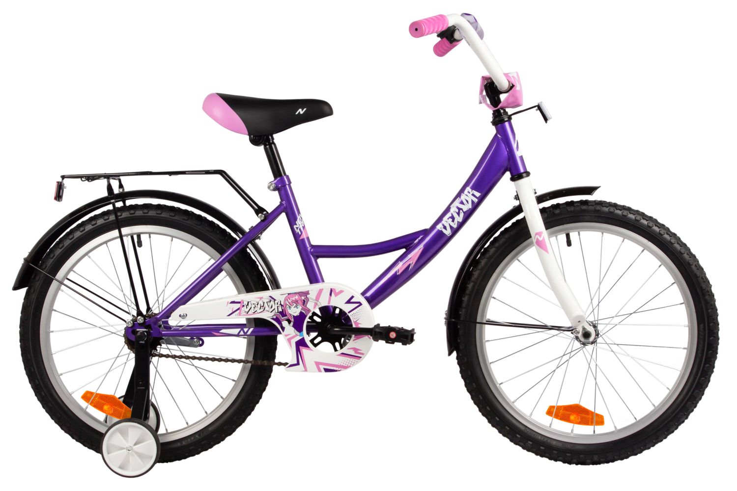 Велосипед NOVATRACK 20", VECTOR, фиолетовый, тормоз нож., крылья и багажник чёрн., защита цепи