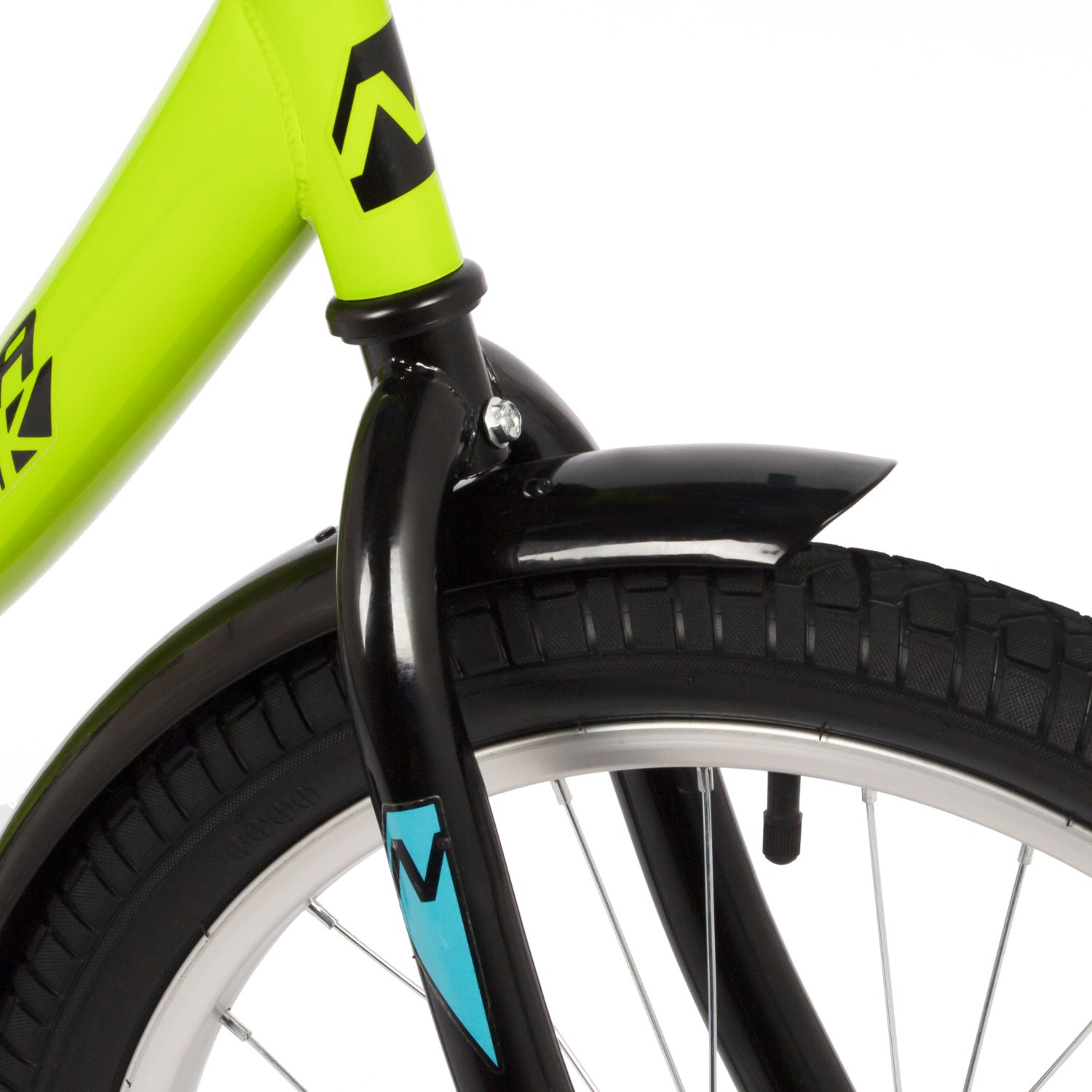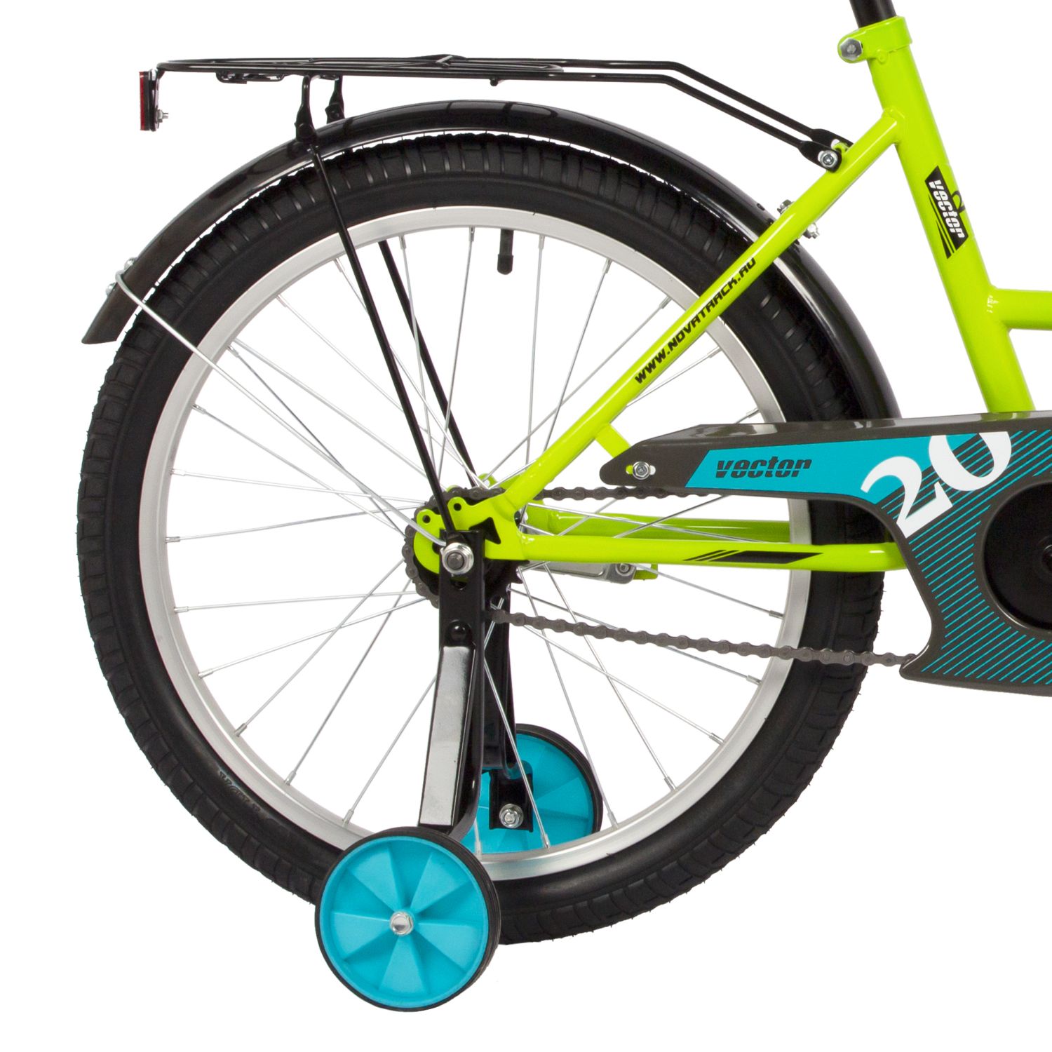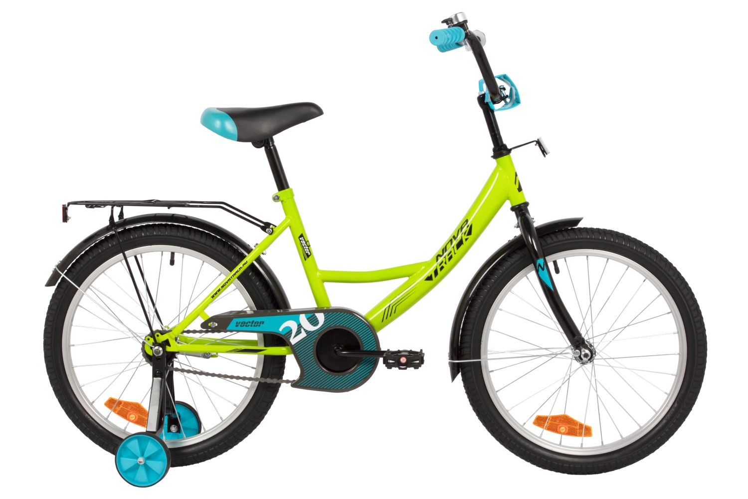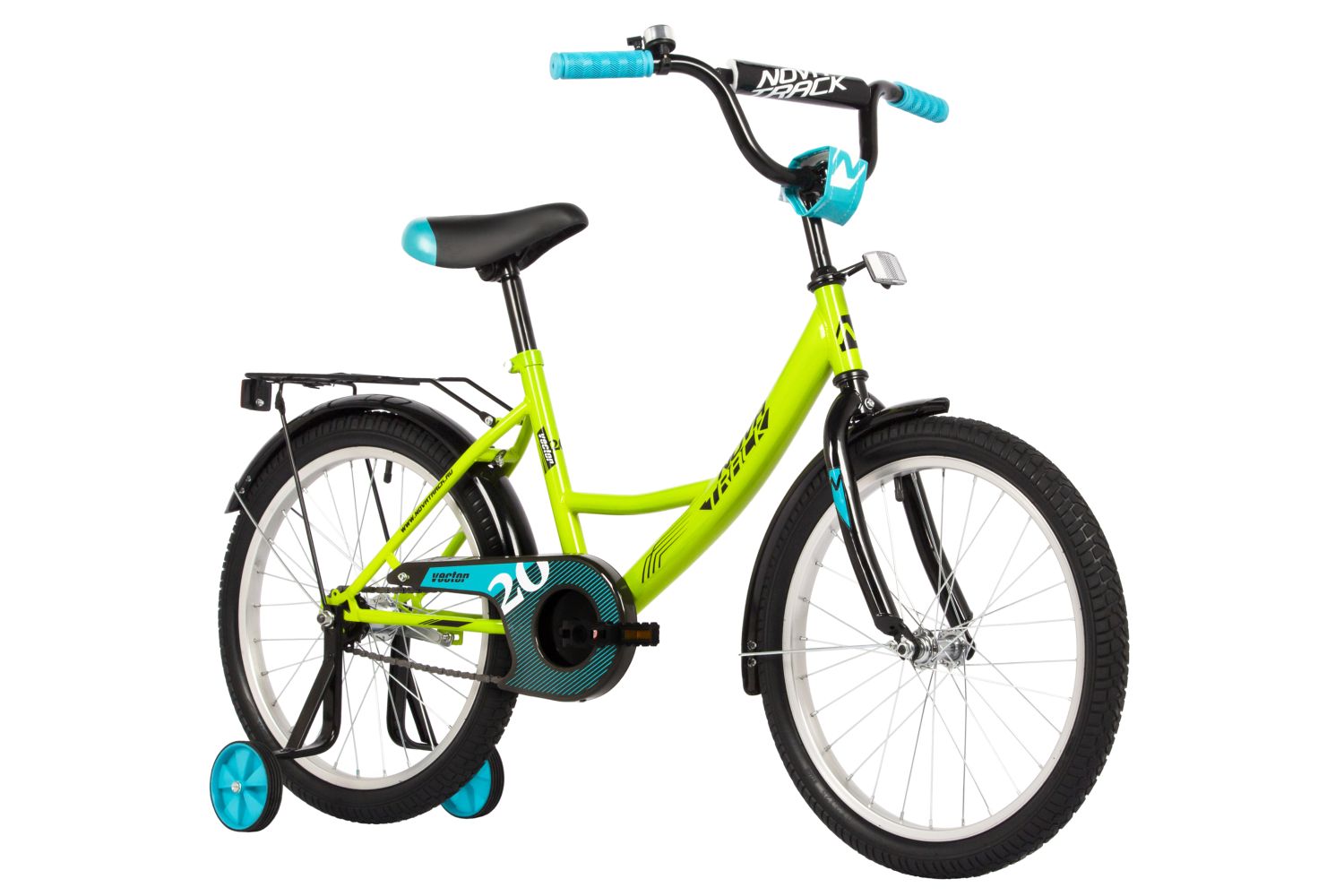 Велосипед NOVATRACK 20" VECTOR лаймовый, защита А-тип, тормоз нож., крылья и багажник чёрн.