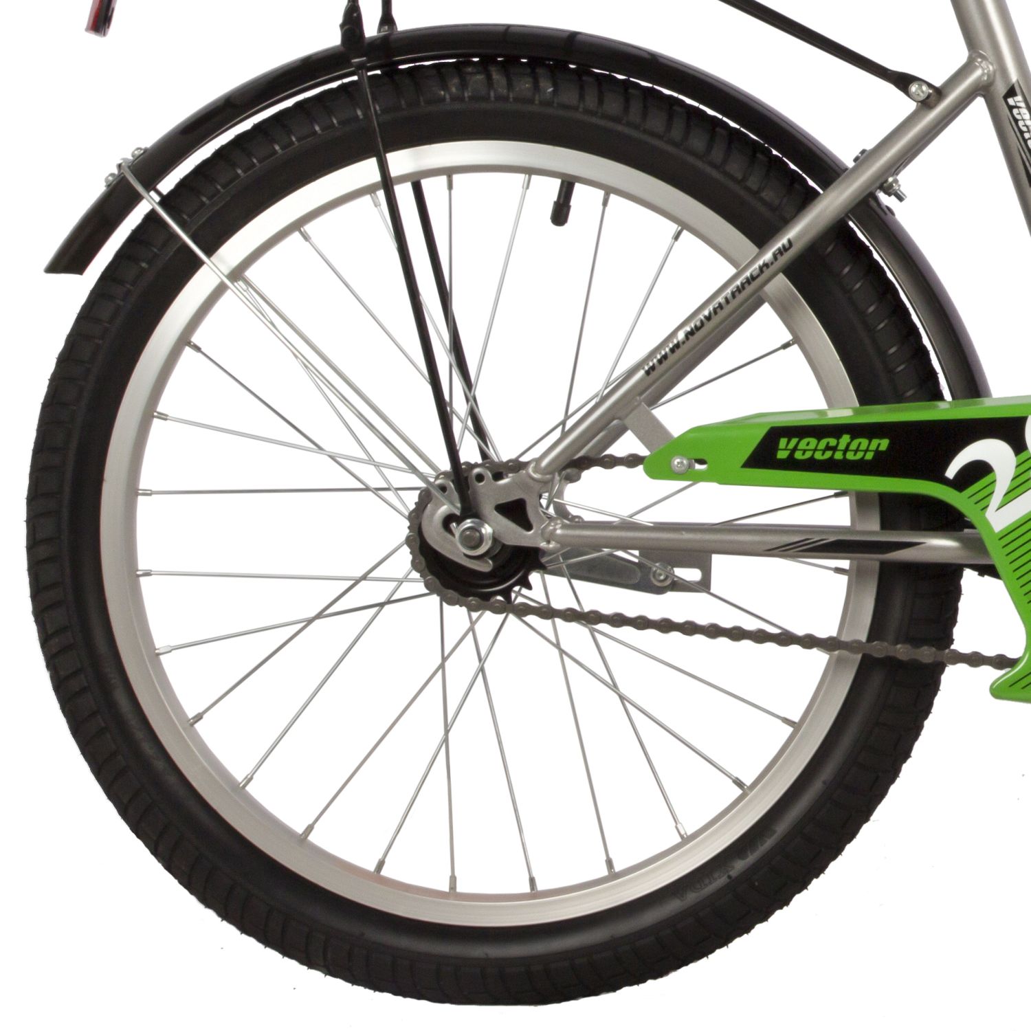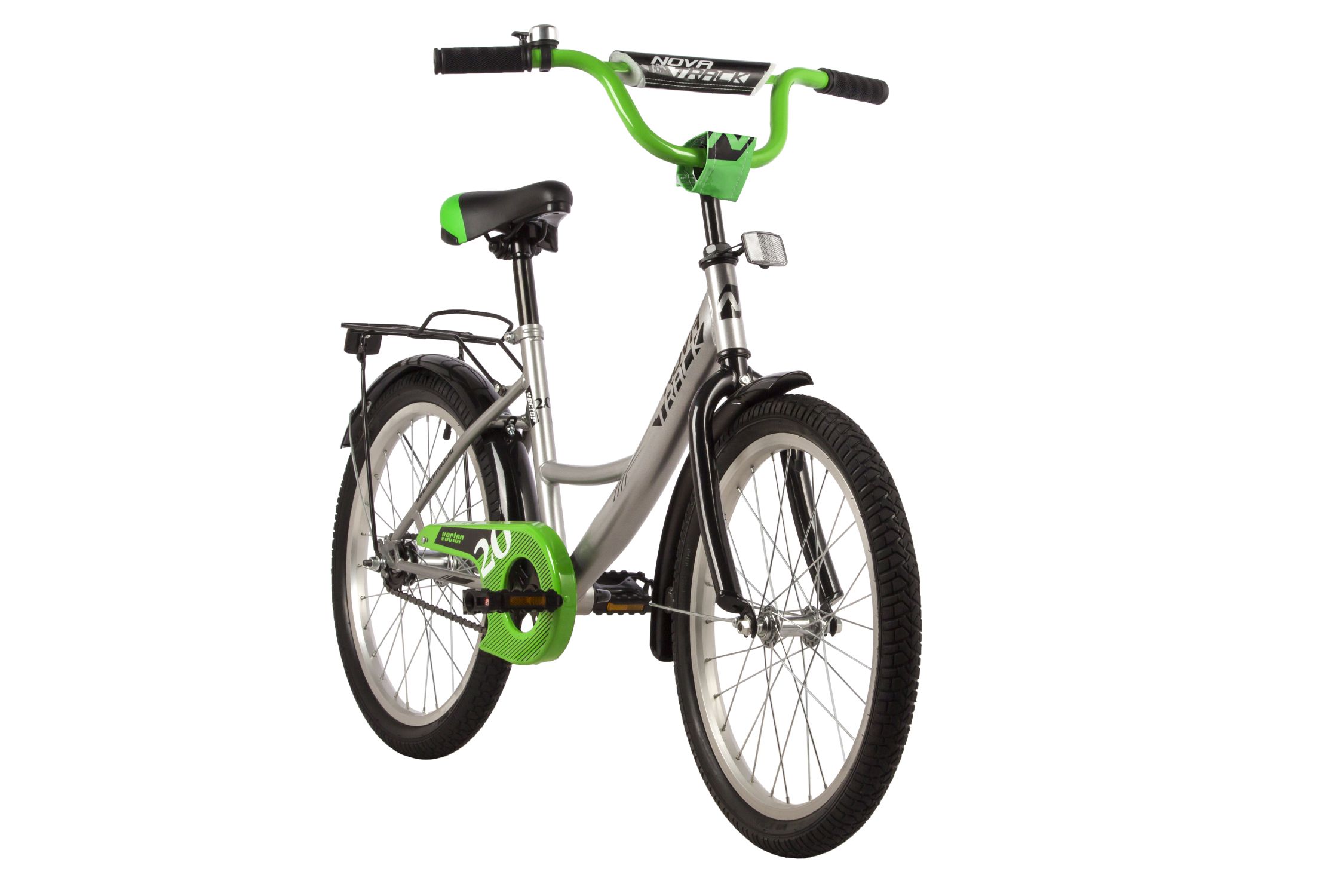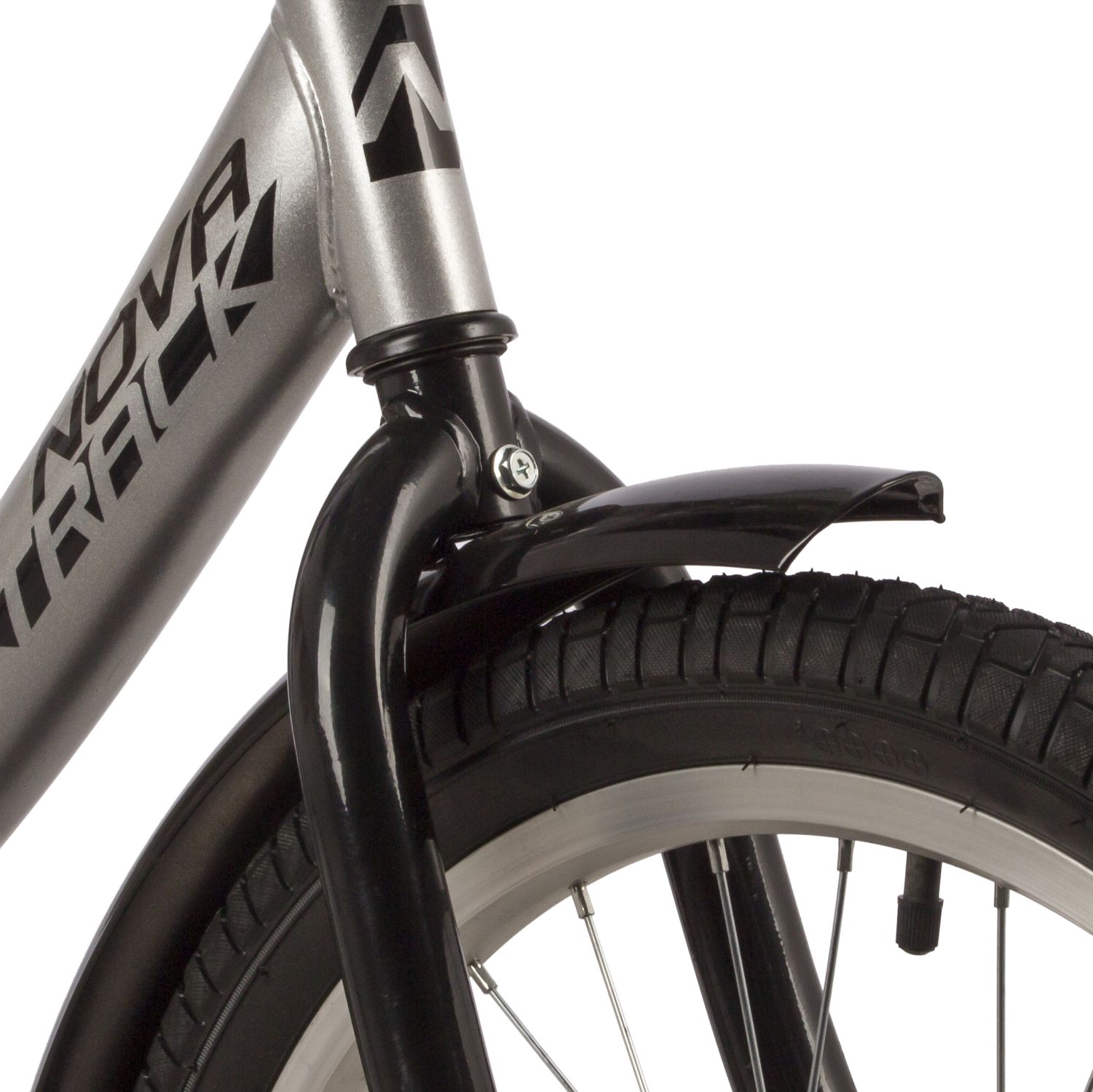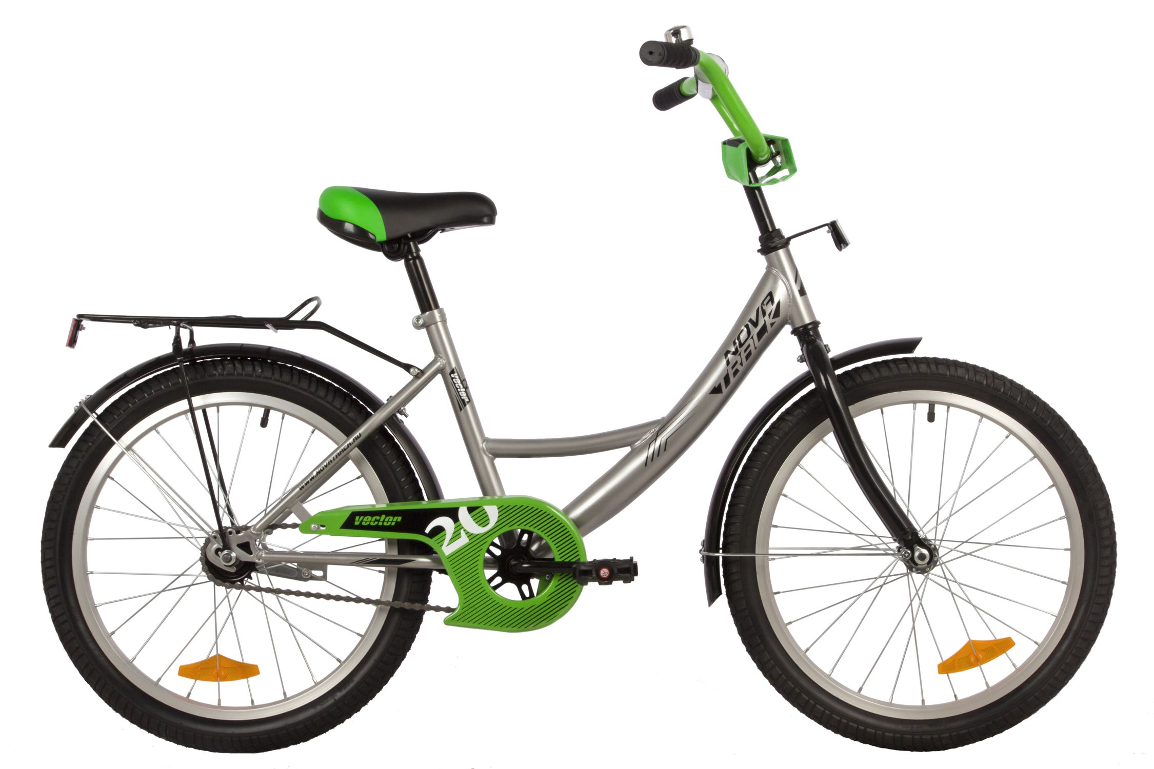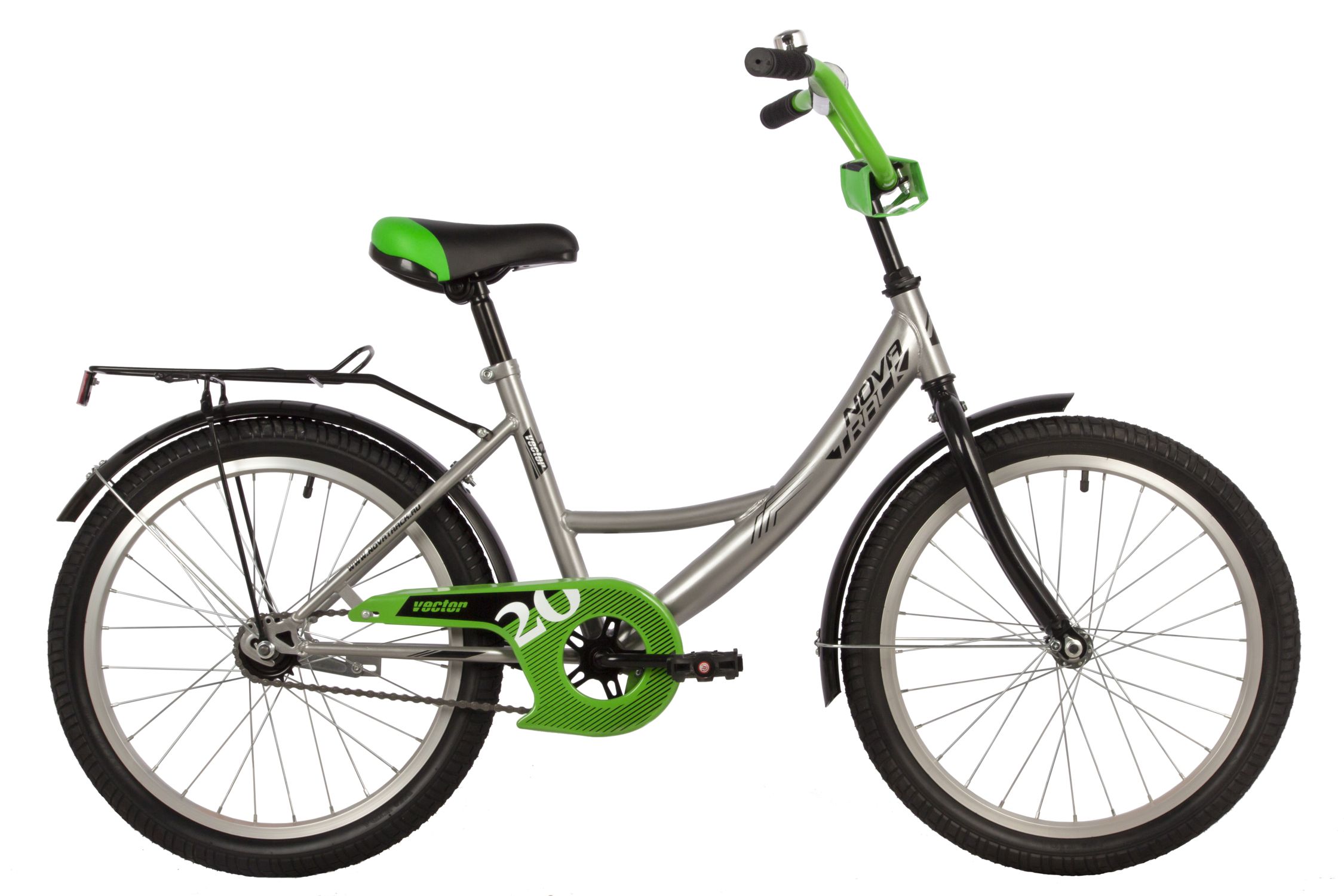 Велосипед NOVATRACK 20" VECTOR сереброо, защ А-тип, тормоз нож., крылья и багаж чёрн., без доп колес