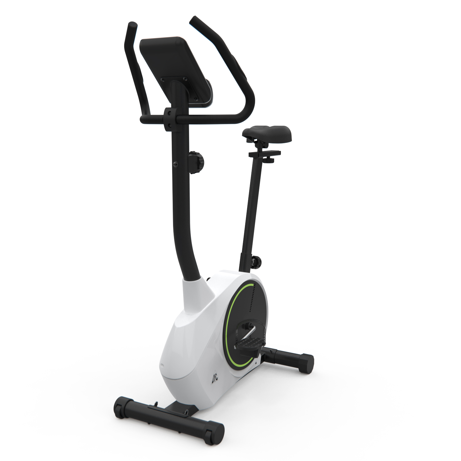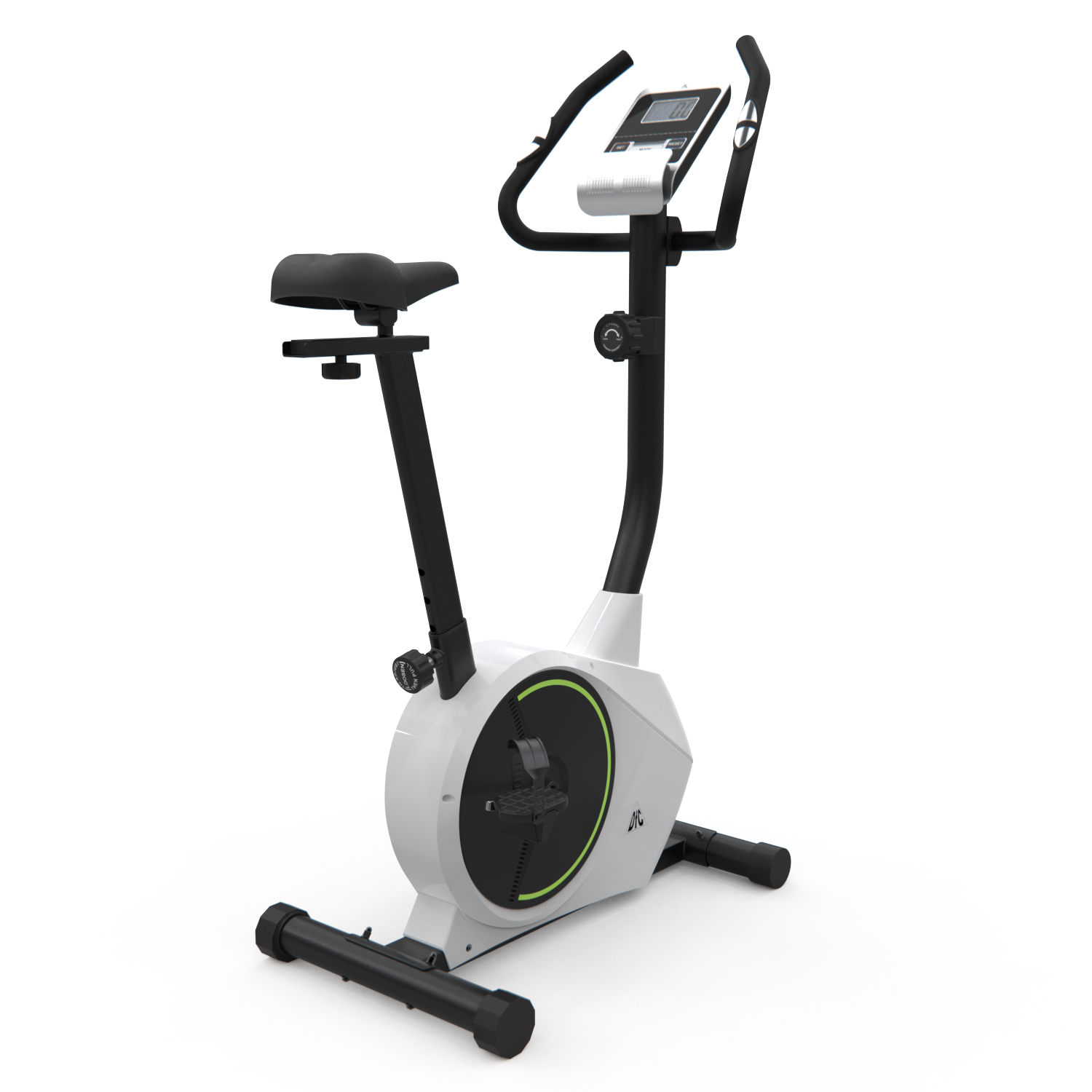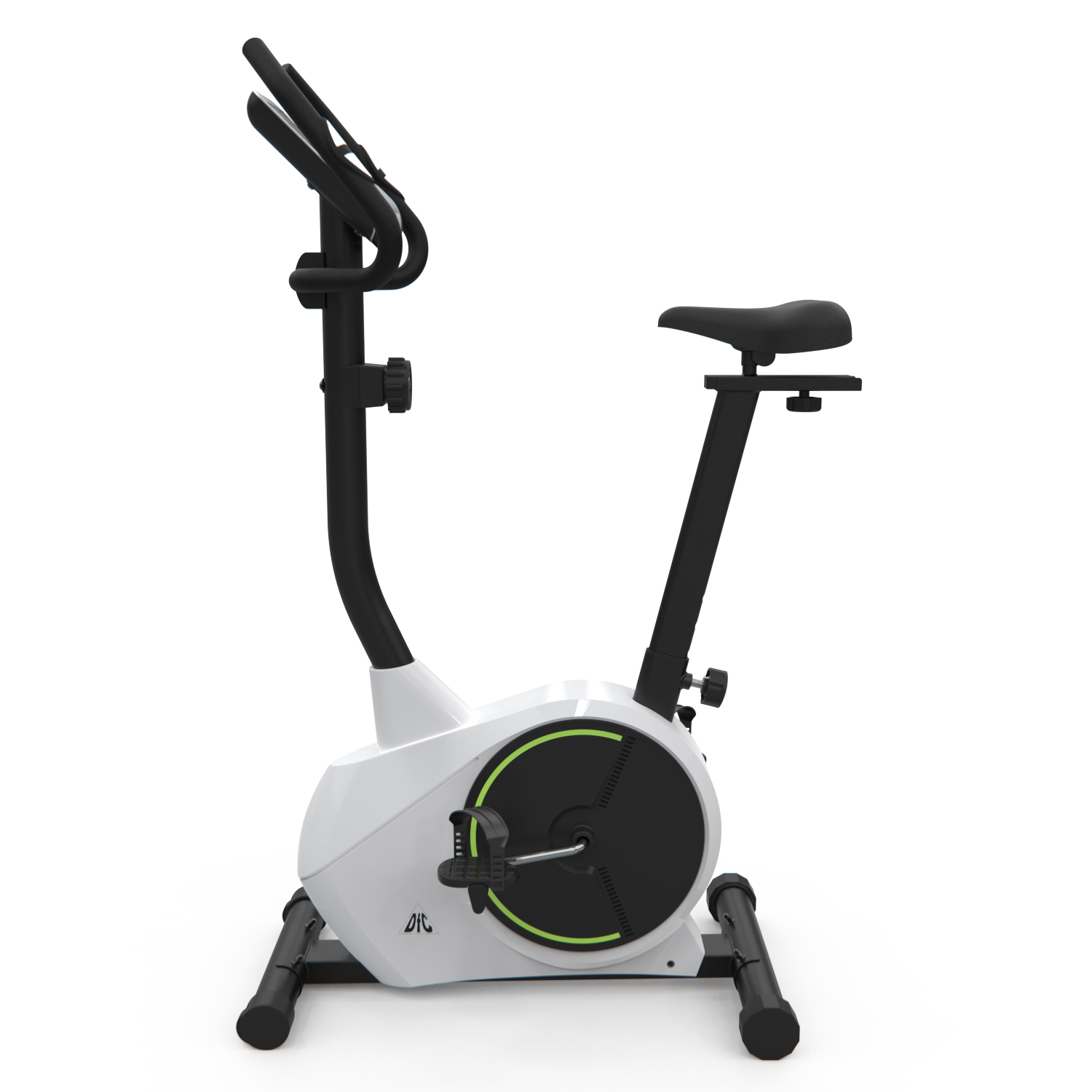 Компактный велотренажер с вертикальной посадкой и комфортным сидением.