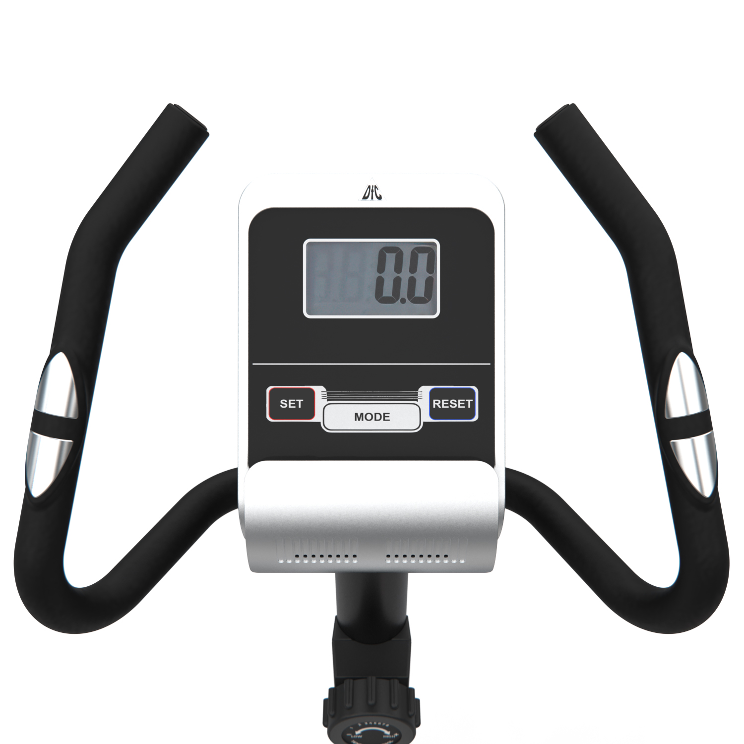 На руле расположены 2 датчика пульса с отображением показаний на дисплее консоли.Как правило, встроенные на тренажерах датчики имеют погрешность измерения. Поэтому для более точного определения частоты сердечных сокращений (ЧСС) рекомендуем использовать нагрудный кардиопояс с часами - монитором, модель DFC W117 (опция, приобретается отдельно). Показания консоли: скан, время, скорость, расстояние, пульс, калории, общее расстояние.