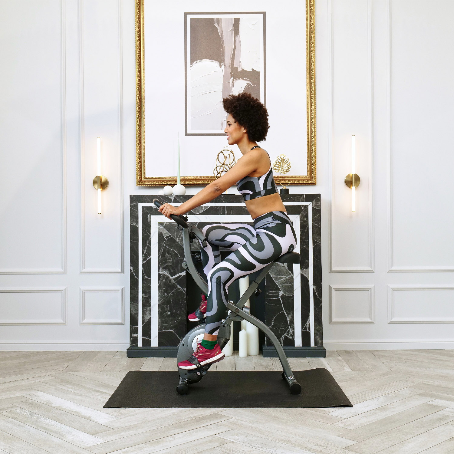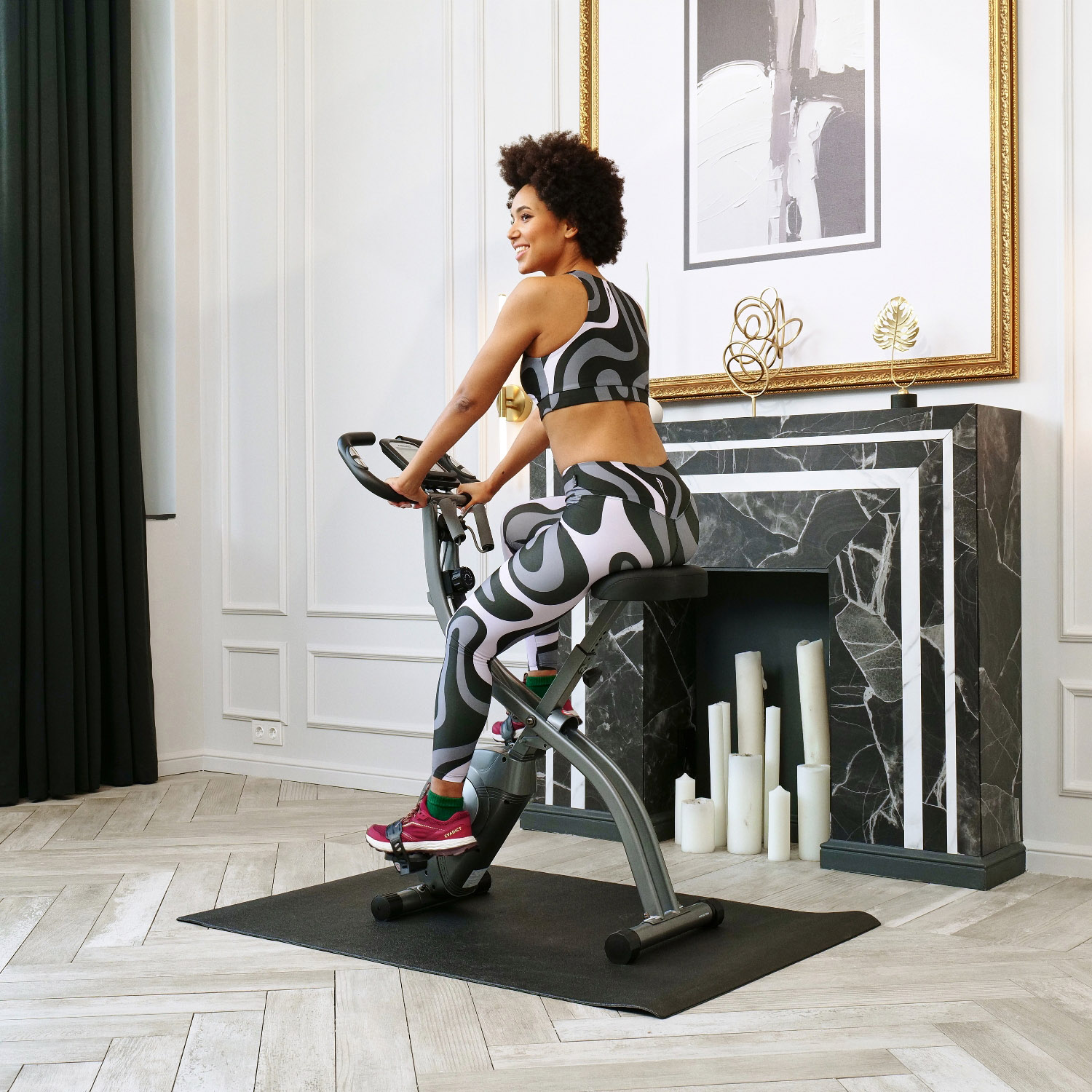Максимальный вес пользователя до 120 кг. Велотренажер имеет складную конструкцию, что позволяет удобно хранить его в домашних условиях. Сиденье и спинка из полиуретана обеспечивают комфорт во время тренировки.