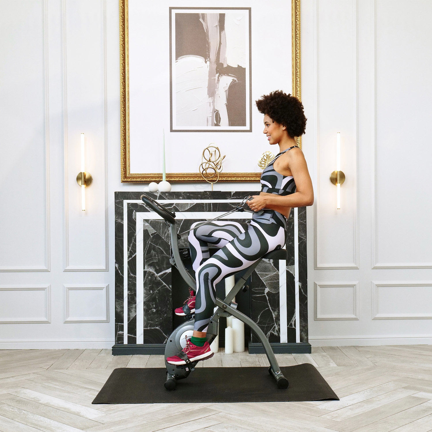 В комплекте с велотренажером идут эспандеры для тренировки рук и верхней части тела. Также велотренажер оснащен транспортировочными роликами и компенсаторами неровности пола, а также держателем для планшета, для более комфортной тренировки.
