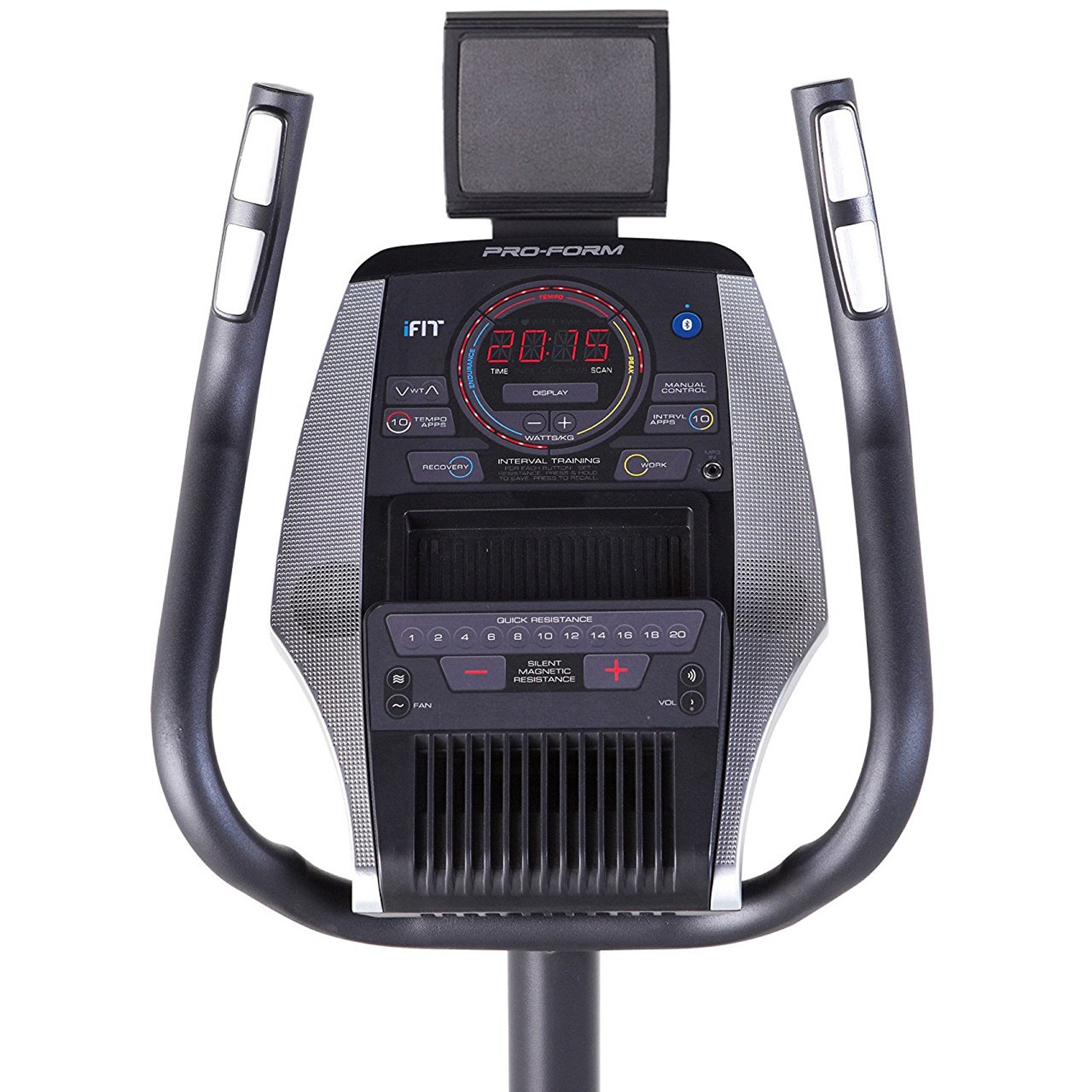 Вертикальный велотренажер для домашнего использования. Включает в себя 20 программ тренировок, 20 уровней электромагнитного сопротивления. Плавный ход маховика, удобное сиденье и эргономичные педали с фиксирующими ремешками позволяют двигаться как на обычном велосипеде. Встроенные в ручки тренажера датчики пульса EKG™ Grip Pulse помогут Вам контролировать частоту сердечных сокращений на протяжении тренировки. А вмонтированный в консоль двухскоростной вентилятор CoolAire™ сохраняет комфортную прохладу во время занятий. LED-дисплей, с круглым, интуитивным интерфейсом и поддержкой технологии iFit®, дает возможность сохранять и отслеживать результаты тренировок. Держатель для планшета, два встроенных динамика и порт для подключения iPod®. Бренд, производитель PRO-FORM , компания ICON (США) Тип домашний, с вертикальной посадкой Система нагружения бесшумная магнитная с электроприводом SMR™ Количество уровней нагрузки 20 Регулировка нагрузки электронная цифровая Маховик 7 кг Максимальный вес пользователя 125 кг Сиденье эргономичное повышенной комфортности Регулировка положения сидения по горизонтали и вертикали Регулировка положения руля нет Педали широкие с регулируемыми ремешками Измерение пульса сенсорные датчики Dual EKG™ Grips, нагрудный пояс Bluetooth®(опция, в комплект не входит!) Дисплей Светодиодный в форме круговой диаграммы Показания консоли Скорость, дистанция, время, уровень нагрузки, темп (скорость педалирования в минутах на км), калории, сердечный ритм, ваша выходная мощность в Ваттах Язык интерфейса английский Количество программ 20 Спецификация программ 10 темповых, 10 интервальных Технология iFit® Совместима с iFit® Live™ (автоматическое отслеживание статистики тренировок, построение маршрутов с Google Maps™, программы знаменитых тренеров, активное интернет сообщество). Подключение по Bluetooth®. Мультимедиа и интеграция два динамика, разъем для МР3-плеера, iPod ® совместимость Интернет нет Держатель для планшета есть Держатель для бутылки есть Вентилятор есть, регулируемый CoolAire™ Транспортировочные ролики есть Компенсаторы неровностей пола есть Размер в рабочем положении 99 х 53 х 147 cм Складывание нет Размер упаковки 92 х 34 х 66 cм Вес (нетто/брутто) 35 кг Питание Сеть 220В, 50Гц Страна производства КНР Гарантия 2 года