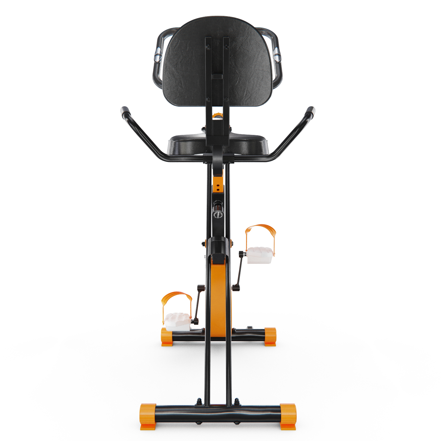 Велотренажер X-Bike DFC CITYSPORTS со спинкой подходит для пользователей весом до 100 килограмм. Он имеет складную конструкцию, что облегчает хранение и транспортировку. С магнитной системой нагрузки и 8 уровнями механической регулировки, вы можете подобрать оптимальный уровень нагрузки для вашей тренировки. На поручнях находятся сенсорные датчики пульса, которые позволяют контролировать ваш сердечный ритм во время тренировки. Монохромный ЖК-дисплей показывает время, скорость, пройденное расстояние, сожженные калории, одометр и ваш пульс. Для работы дисплея требуются две батарейки типа “AAA”, которые входят в комплект. Батарейки устанавливаются в задний отсек консоли.