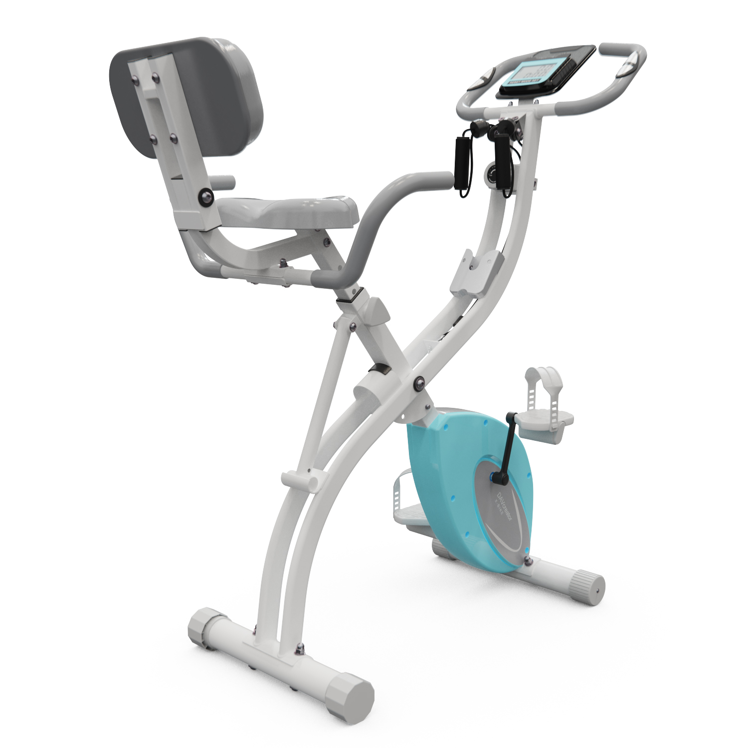 Велотренажёр модели X-Bike нежно-голубого цвета предназначен для пользователей с максимальным весом до 110 кг, что делает его универсальным вариантом для домашнего использования.