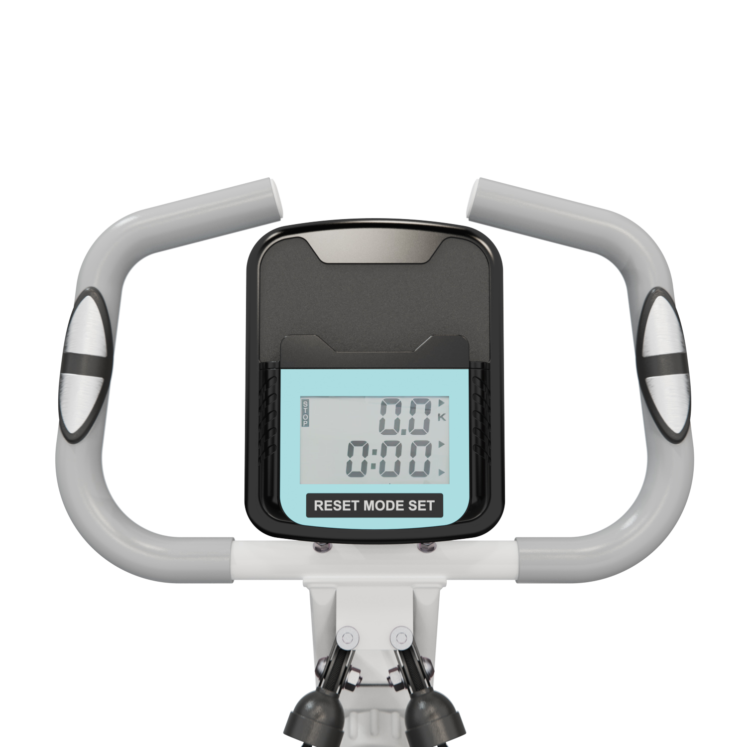 На дисплее велотренажера отображаются дистанция, время, сожженные калории, общий пробег и пульс. Пульс контролируется датчиками, расположенными на поручнях. Консоль велотренажера работает от батареек типа AAA.