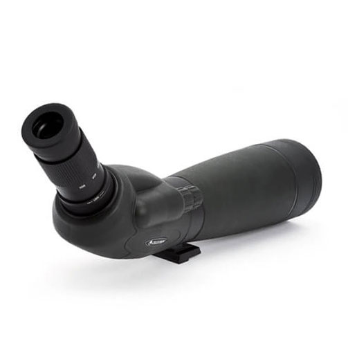 Зрительная труба Celestron TrailSeeker 80 – влагозащищенный прибор с переменным увеличением 20–60x и двухскоростной фокусировкой. Полное просветление XLT и апертура 80 мм позволяют наблюдать яркую картинку даже в непогоду. Модель подойдет для полевых наблюдений, охоты или начальных астрономических наблюдений, если установить дополнительный окуляр с высокой кратностью. Фанатам фотоохоты пригодится Т-адаптер для камеры (в комплекте). Преимущества прибора – встроенная бленда-противоросник и широкий угол обзора. Корпус заполнен азотом, окуляр наклонен под углом 45°. Вести длительные наблюдения комфортнее со штатива (приобретается отдельно). Благодаря поворотной площадке можно менять угол бокового наклона окуляра в пределах 360°. С трубой также поставляются защитные крышки и чехол для транспортировки.